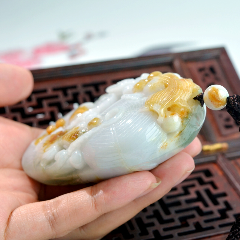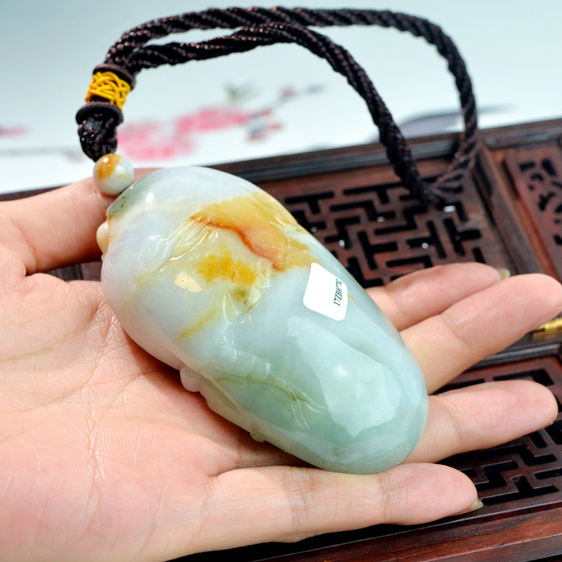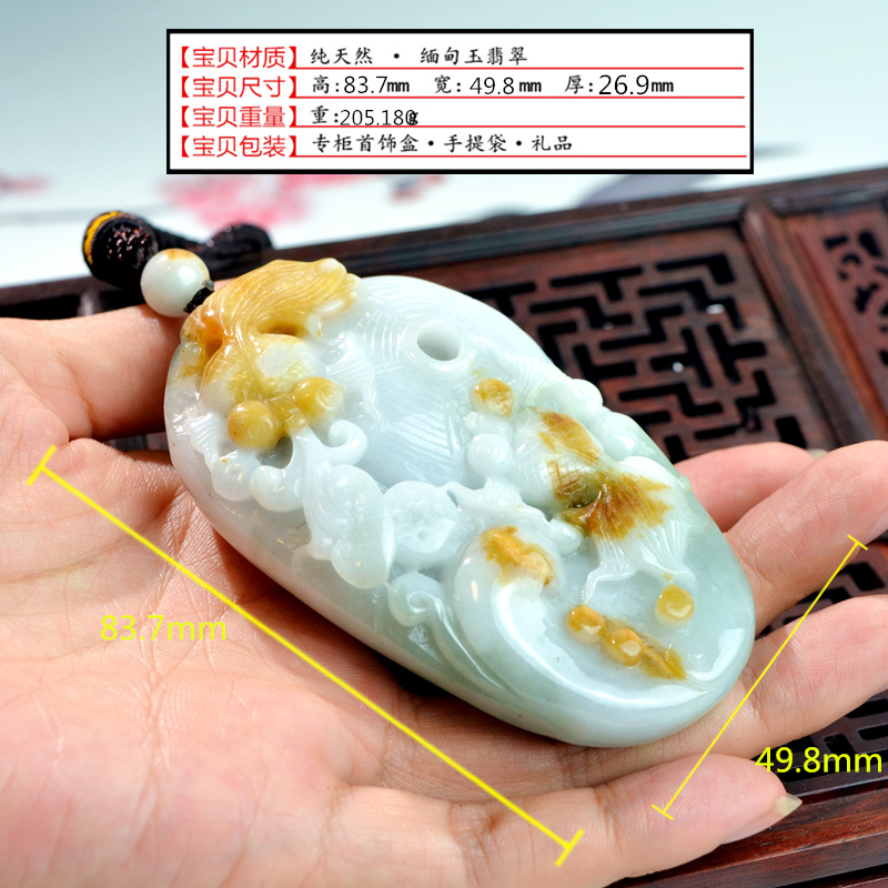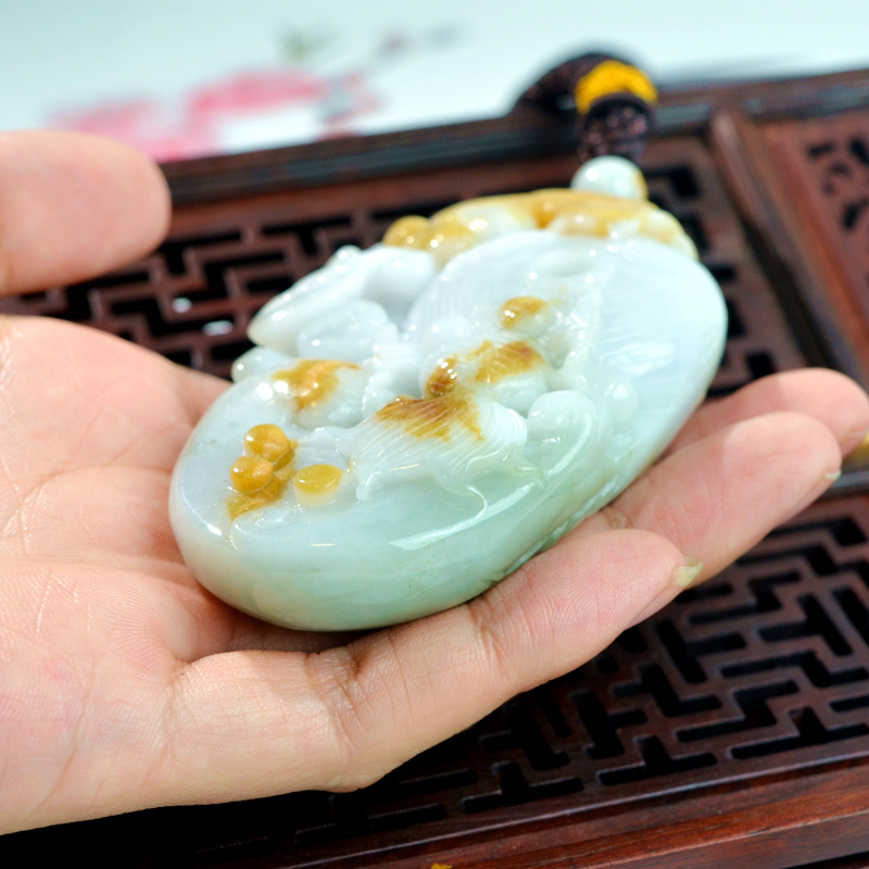 正品天然缅甸玉翡翠金鱼手把件 美满如意 吉祥幸福金玉满堂如意