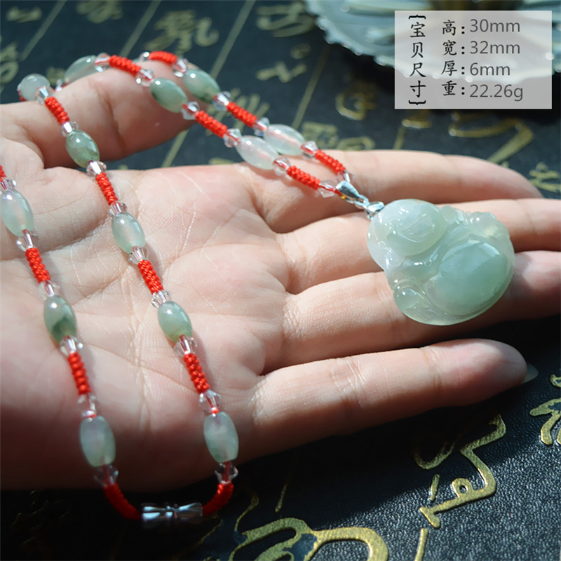 天然翡翠佛吊坠双色冰透佛公笑佛带链玉石弥勒佛挂件送女朋友礼物