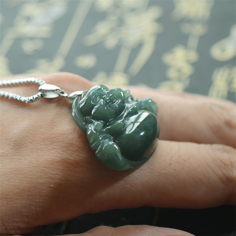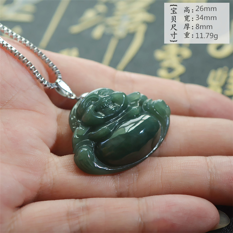 天然翡翠弥勒佛挂件玉石笑佛玉坠配银链老婆女朋友情人节生日礼物