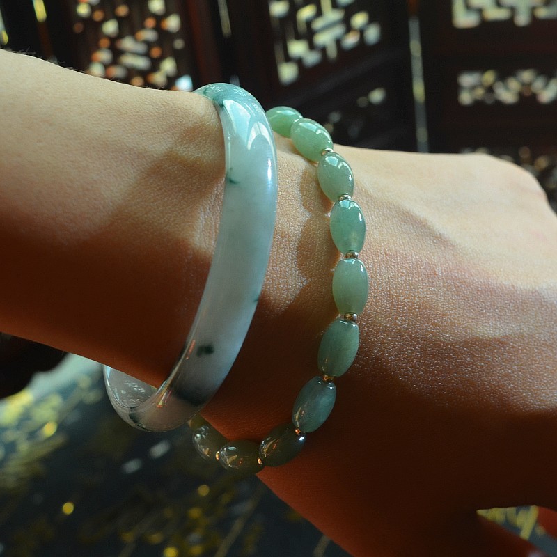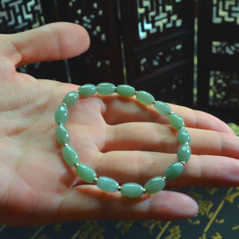 缅甸 A货油青翡翠手链男女款玉石米珠手串单圈情侣手饰附证书