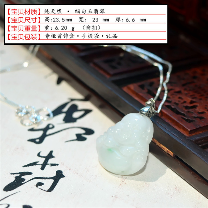 翡翠玉佛吊坠女款佛公浅绿糯白弥勒佛挂坠缅甸玉石坠子本命年礼物