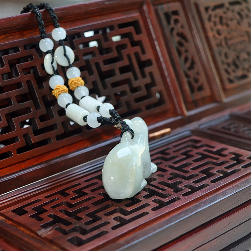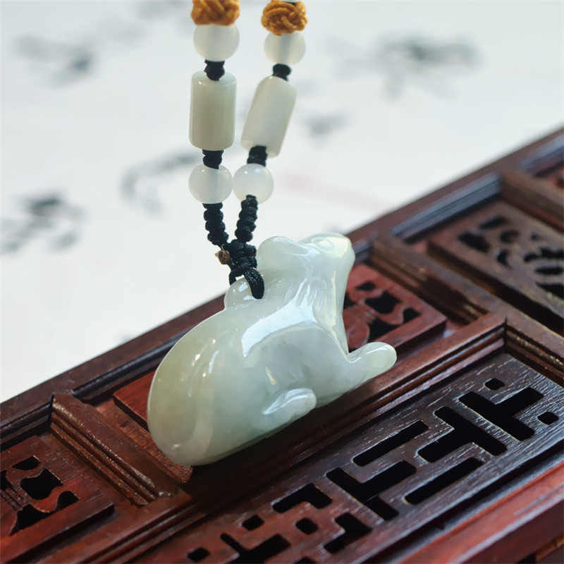 正品天然缅甸A货翡翠玉生肖兔吊坠嫦娥玉兔挂件化太岁六合男女