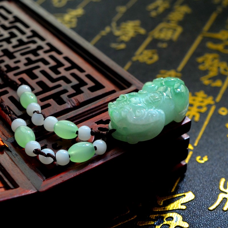 天然缅甸A货翡翠貔貅吊坠男女款霸气貔貅玉佩玉坠挂件玉貔貅项链