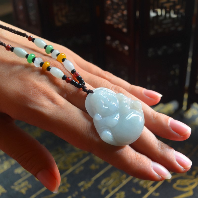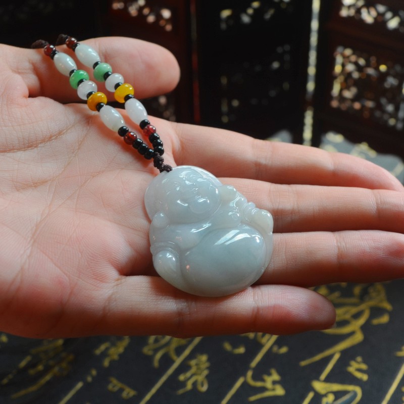 缅甸A货翡翠吊坠天然翡翠佛公吊坠飘绿弥勒佛玉佛吊坠女款笑佛