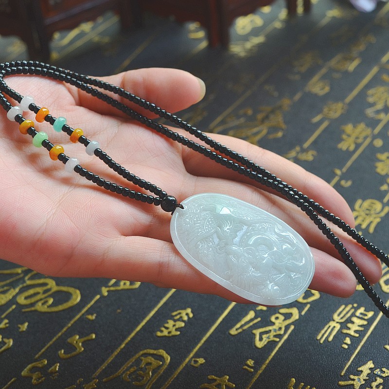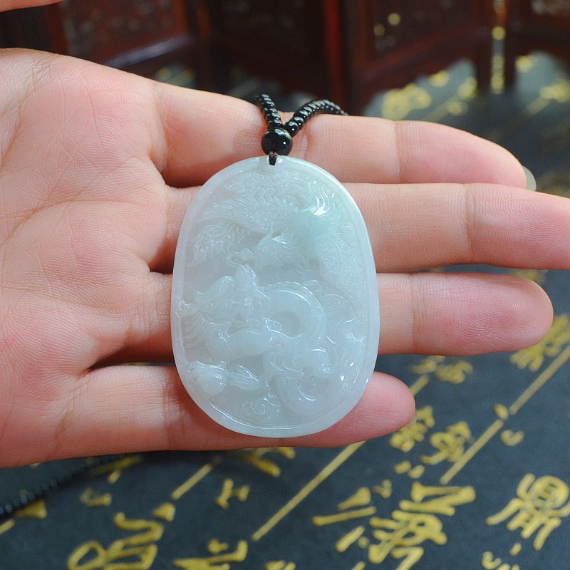 缅甸翡翠A货龙凤玉佩天然玉石吊坠圆牌情侣挂件项链男女正品证书