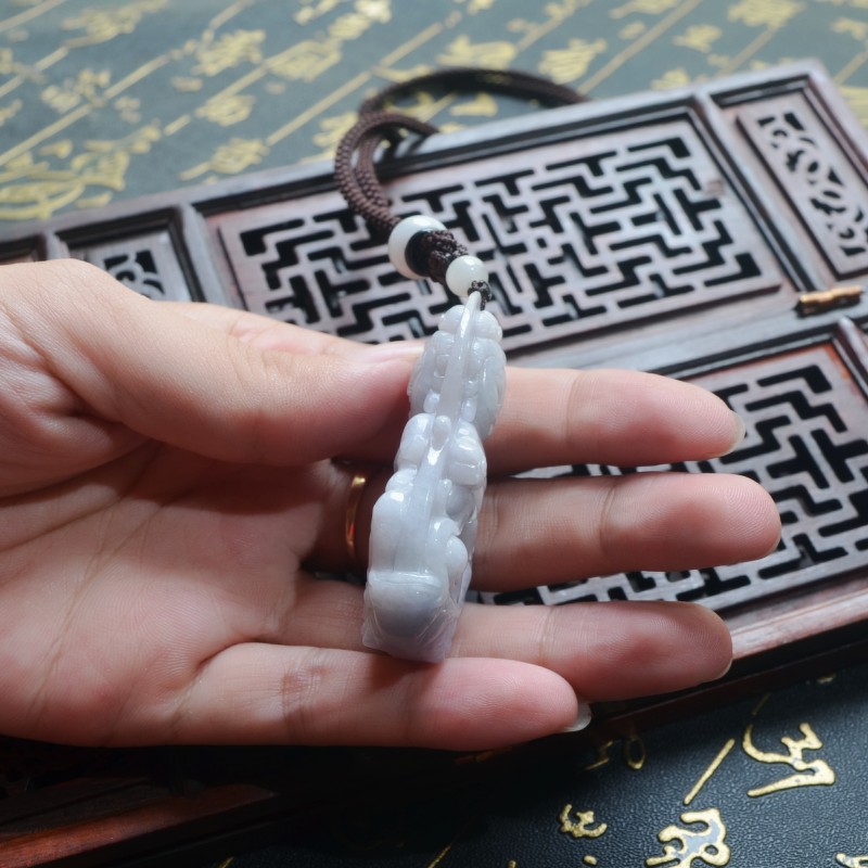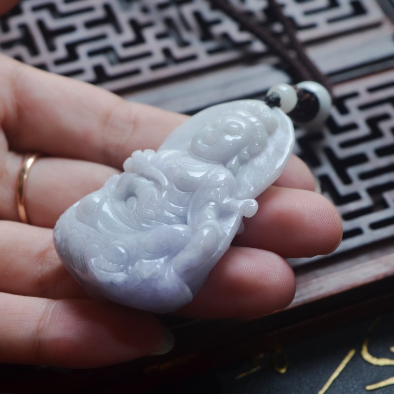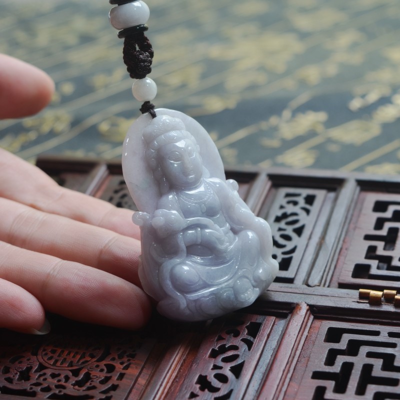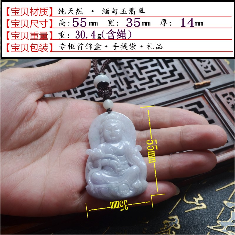 缅甸翡翠A货紫糯观音吊坠男项链挂件双面雕工菩萨玉坠情侣款饰品