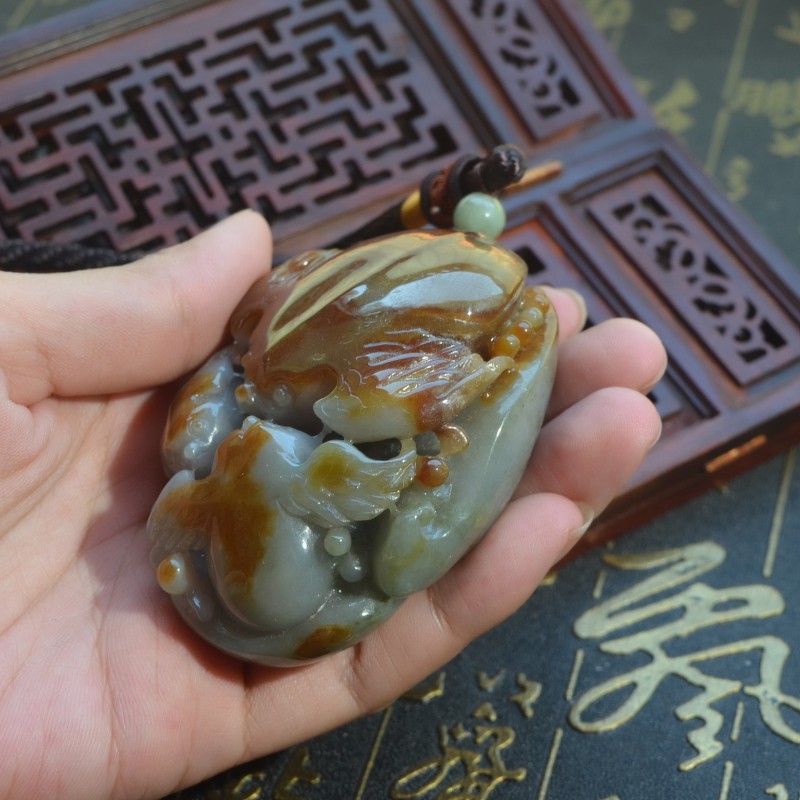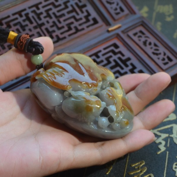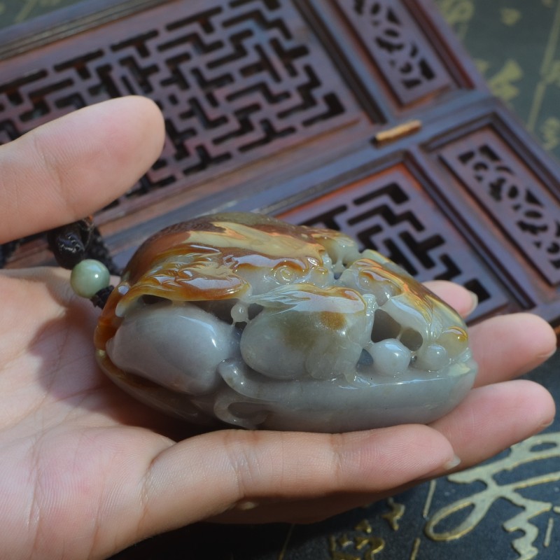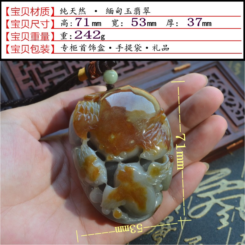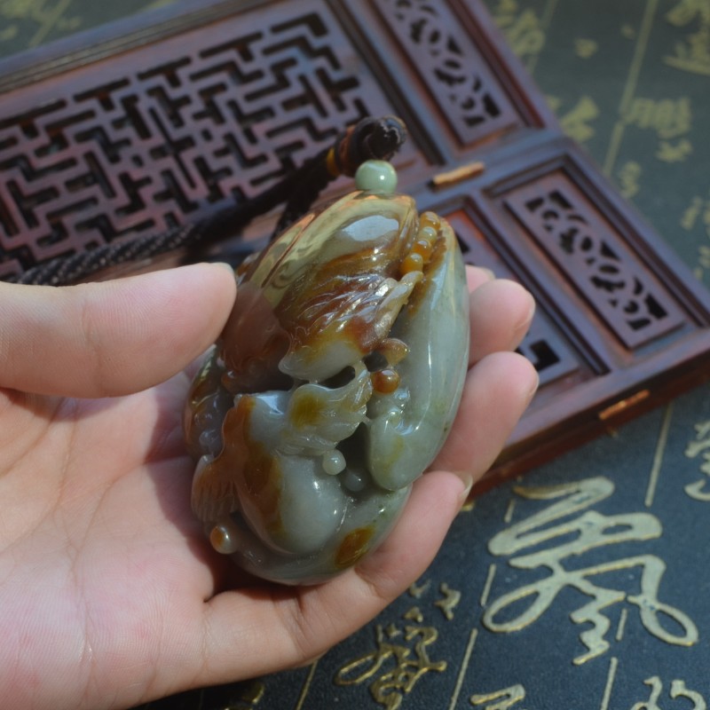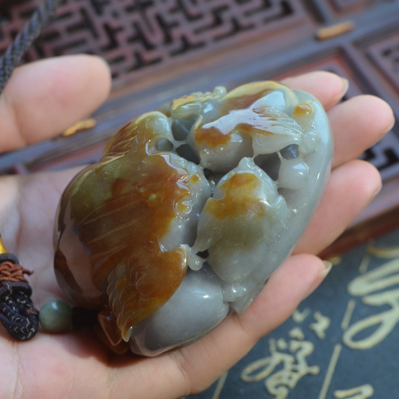 天然缅甸a货翡翠如意富贵鸟手玩件 黄翡花鸟手把件 送证书挂绳