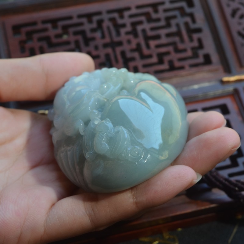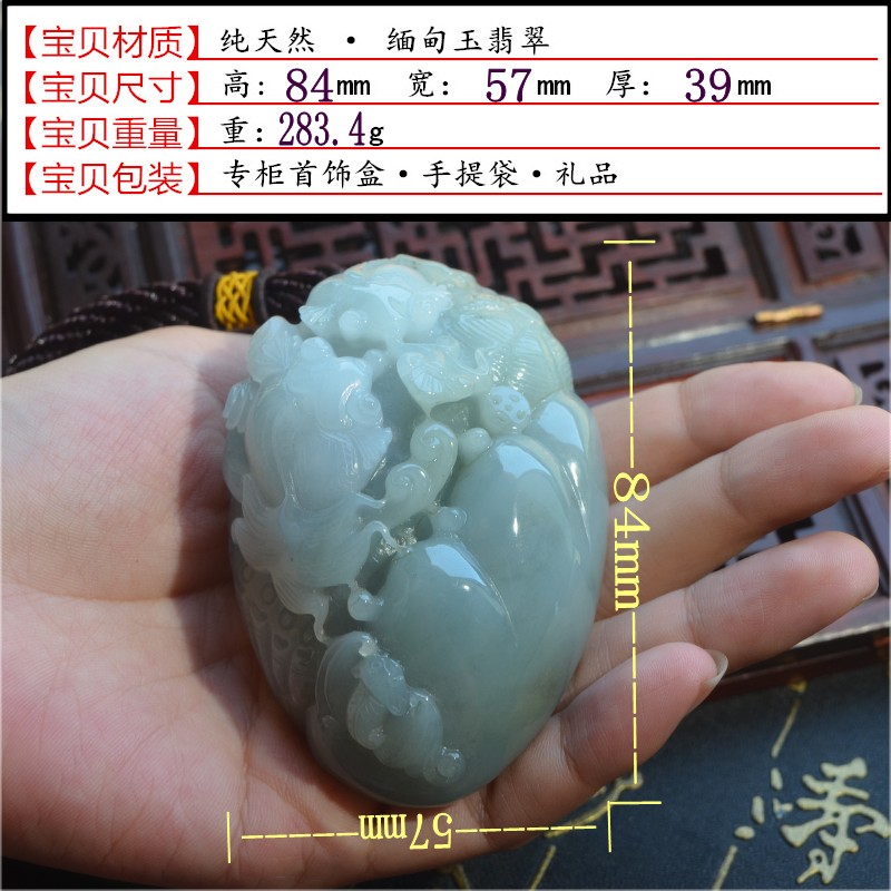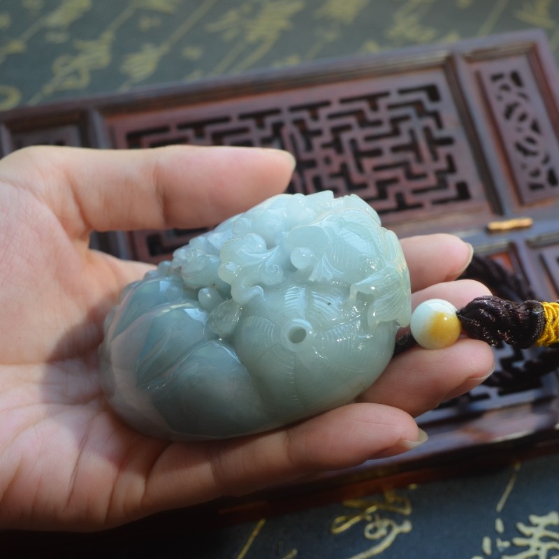 翡翠福在眼前手把件天然A货老坑种精雕玉手玩件金玉满堂富贵有余