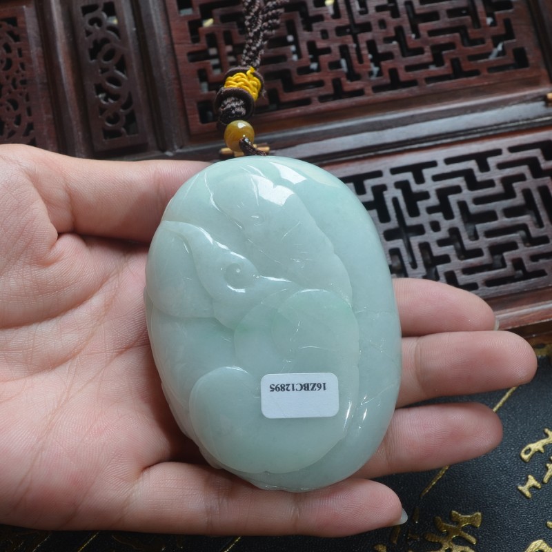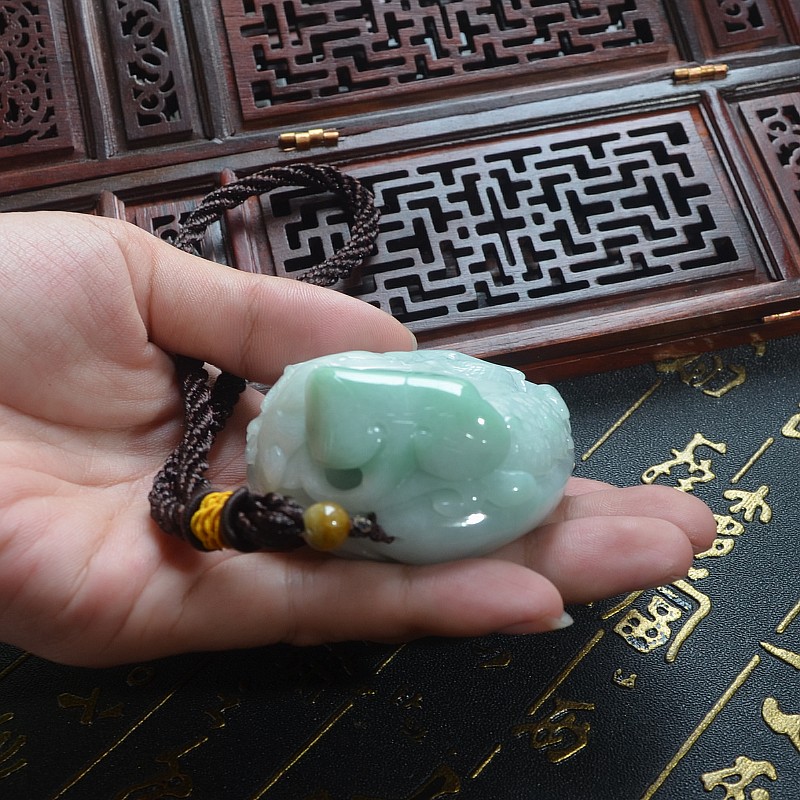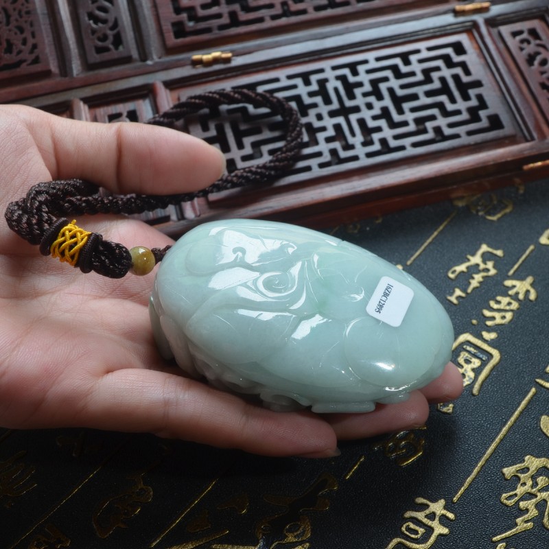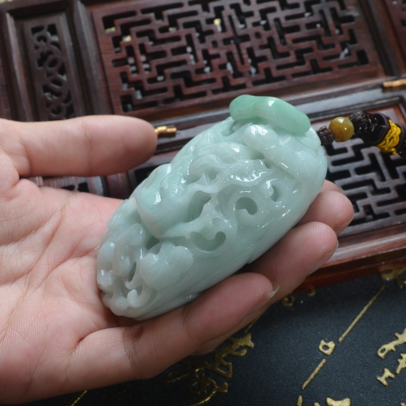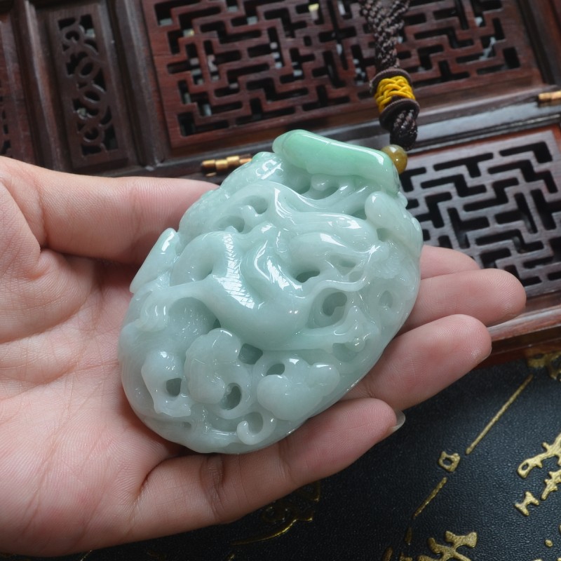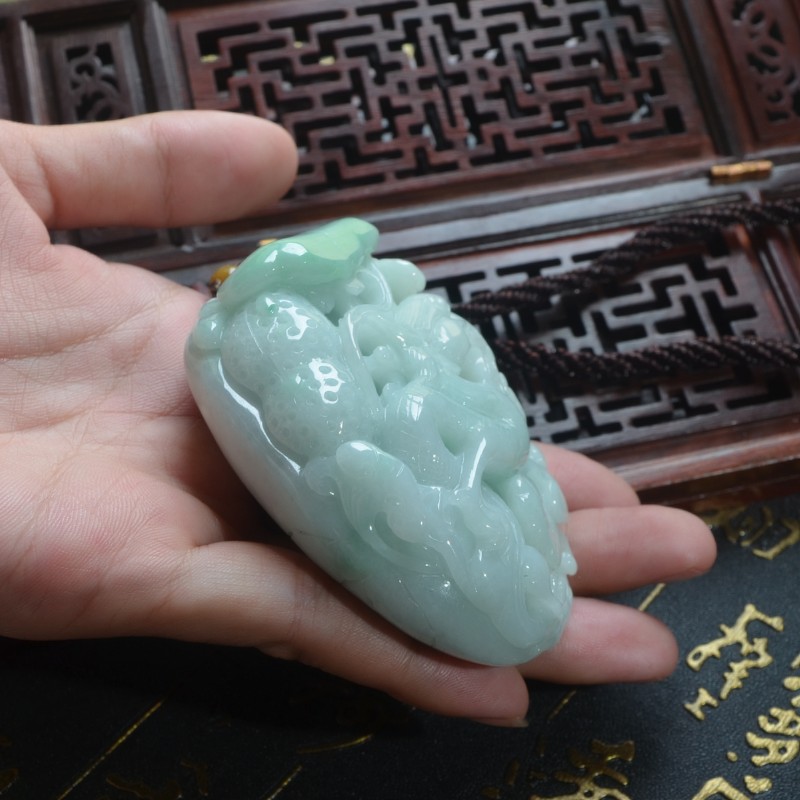 缅甸天然a货翡翠龙手把件生意兴隆手玩件花生玉石如意把玩件