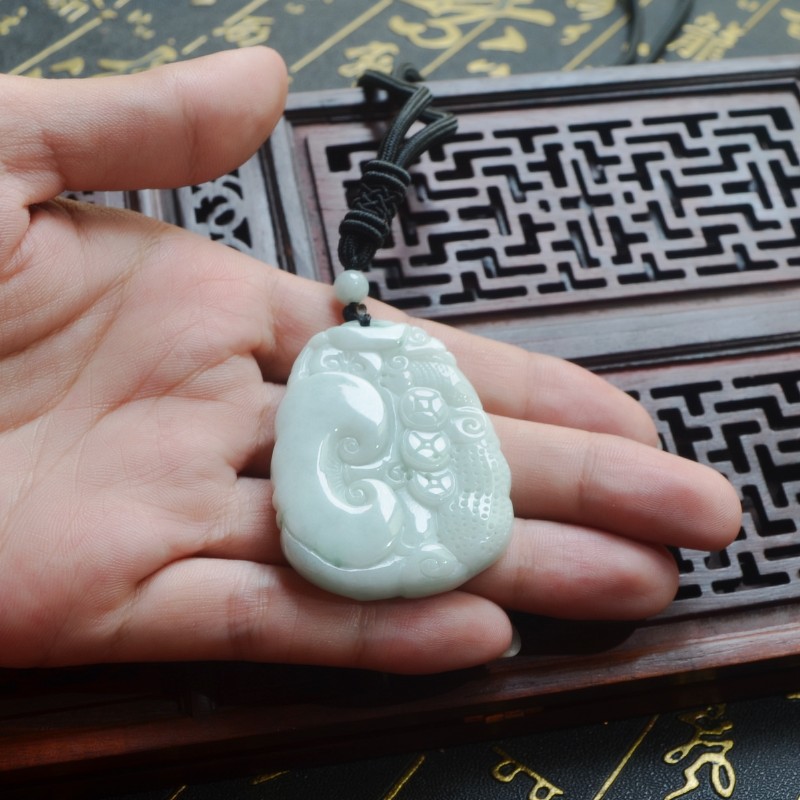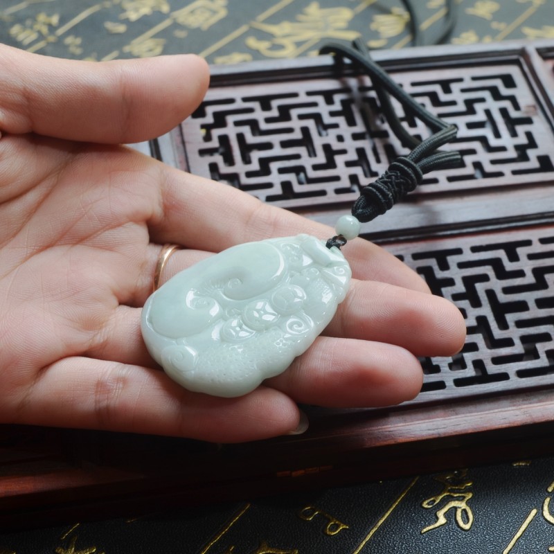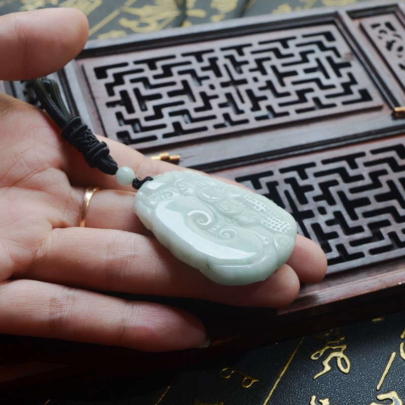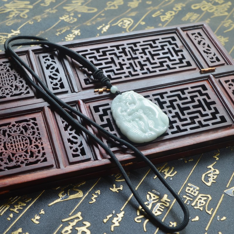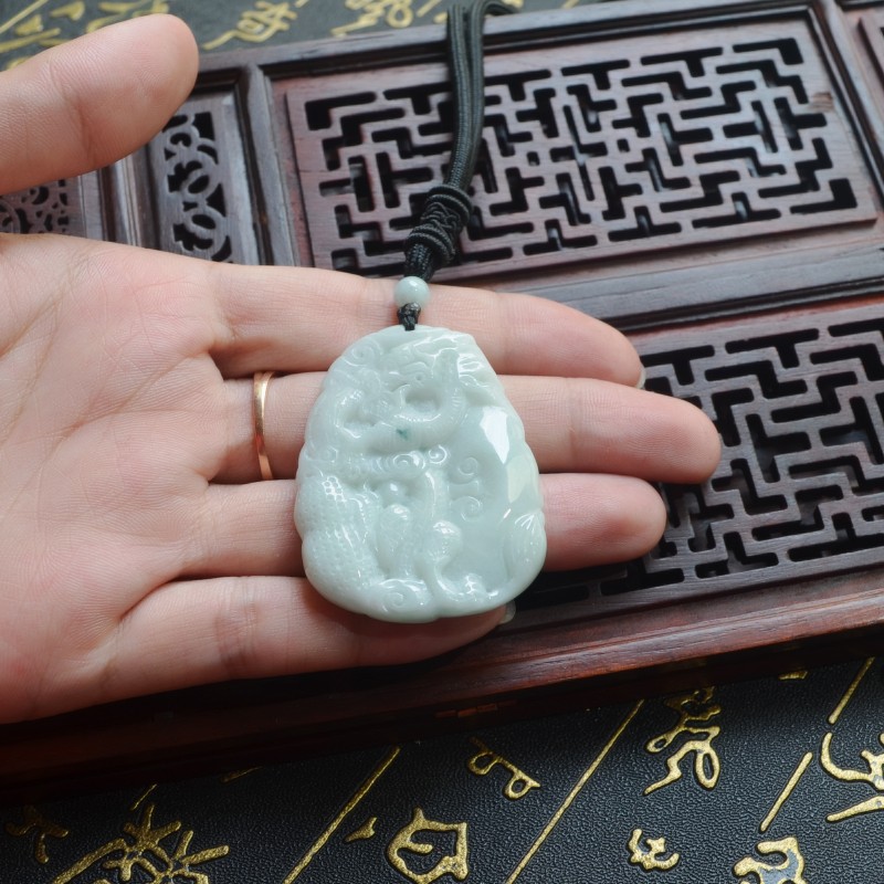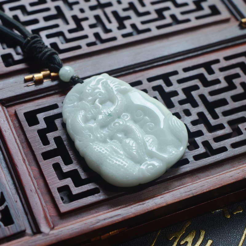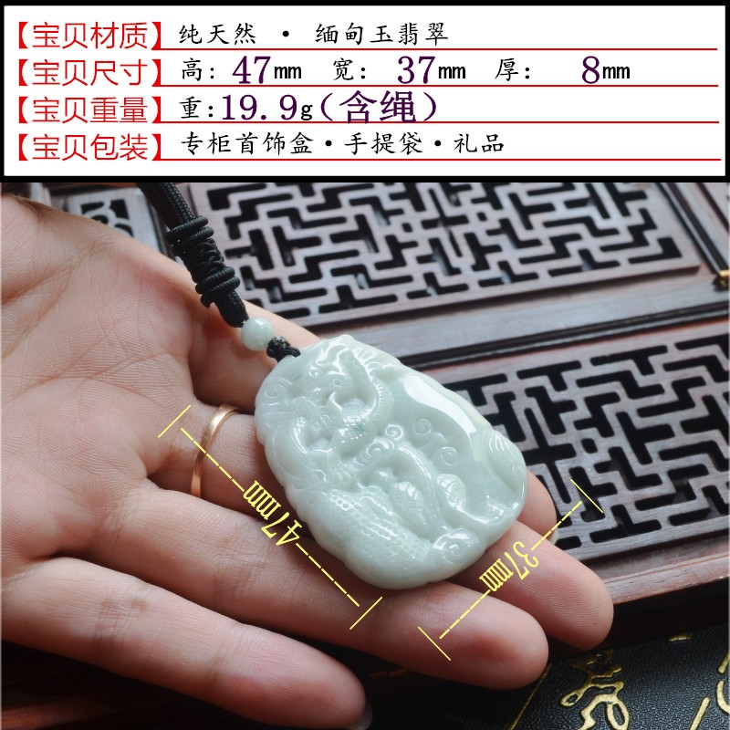天然缅甸翡翠龙牌吊坠 A货冰种霸气男款玉佩 龙属相生肖龙牌挂件