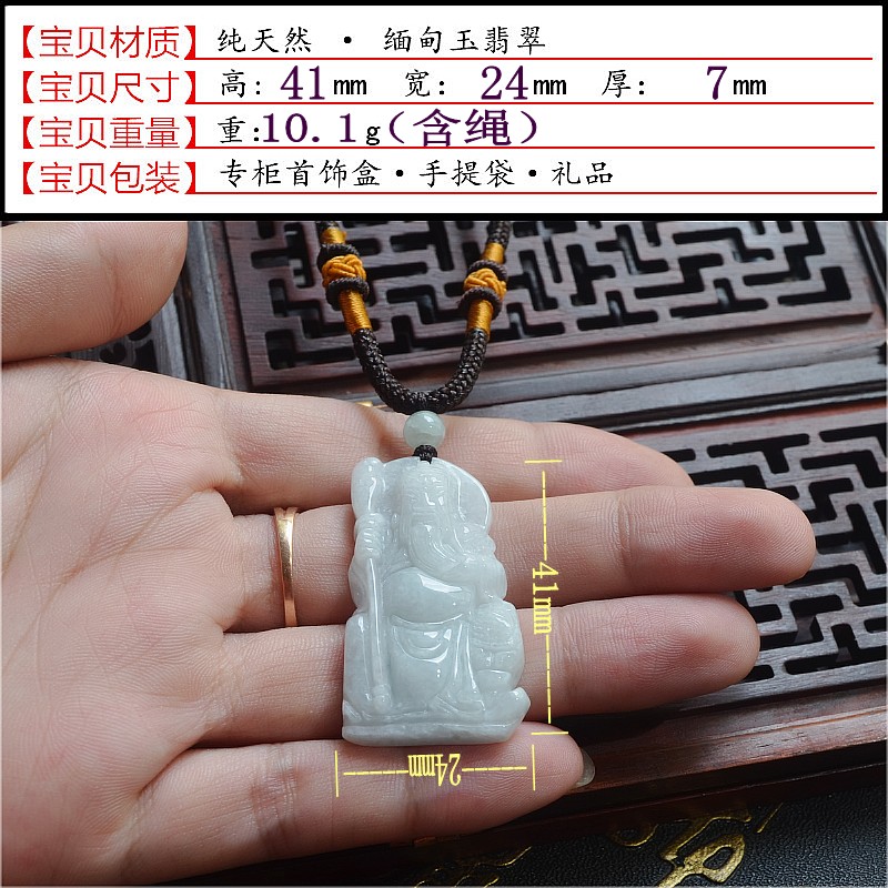 缅甸翡翠吊坠a货关二哥挂件玉牌 武财神关羽关公吊坠财神爷吊坠