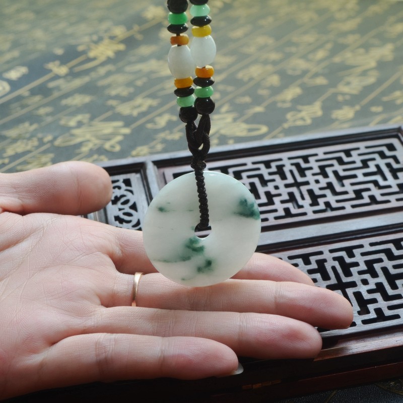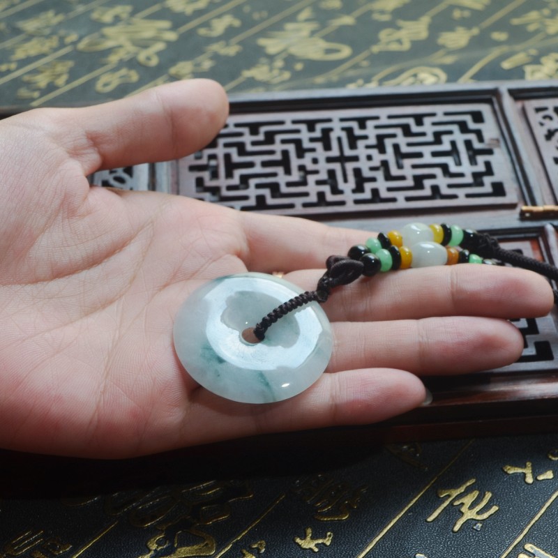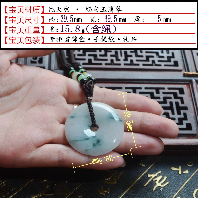 翡翠平安扣吊坠冰种翡翠飘花玉坠男女天然A货缅甸翡翠平安扣大号