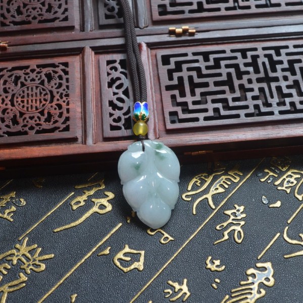 正品A货缅甸天然飘翠花翡翠树叶吊坠玉叶子带证书事业有成玉坠
