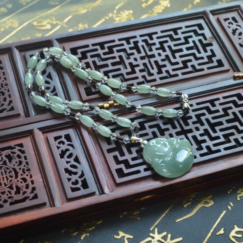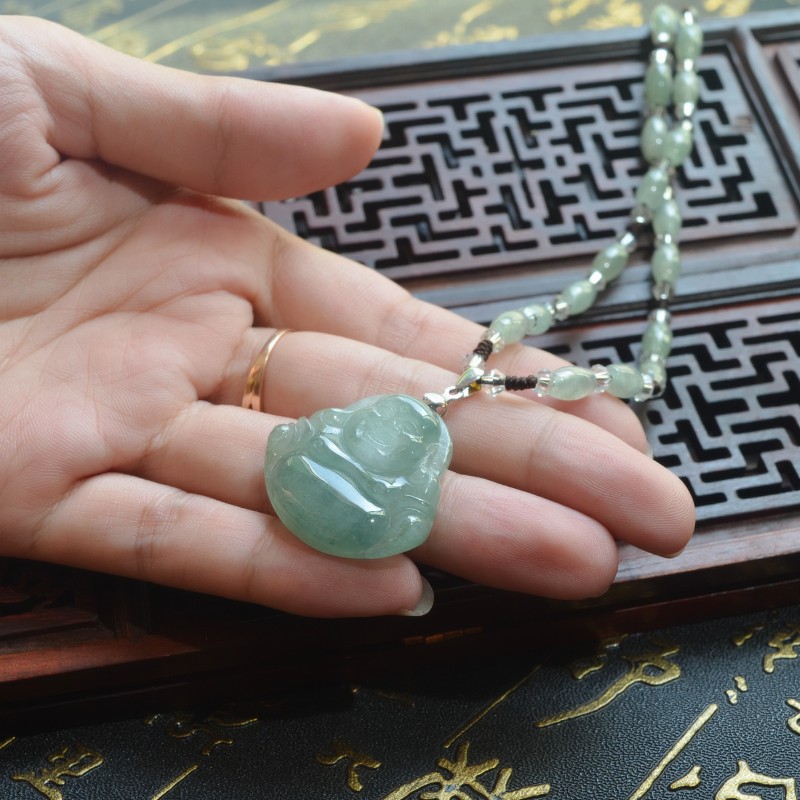翡翠玉佛吊坠女款笑佛天然A货弥勒佛公玉坠项链缅甸玉器玉石挂件