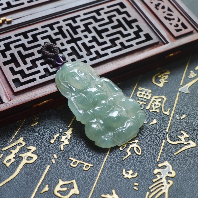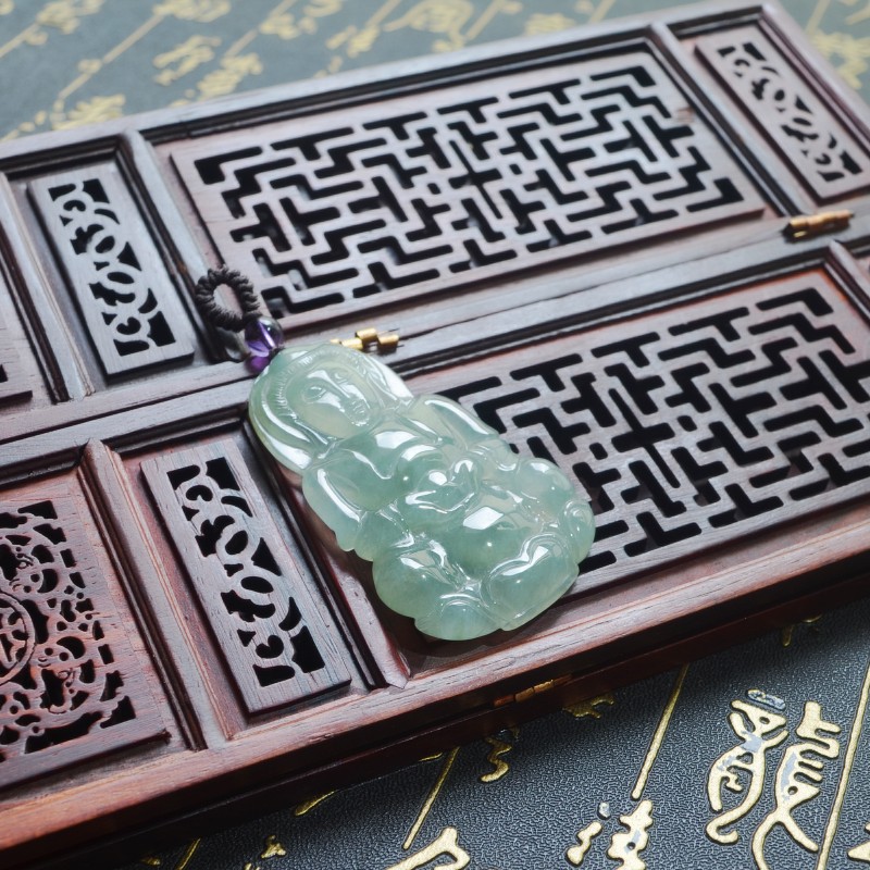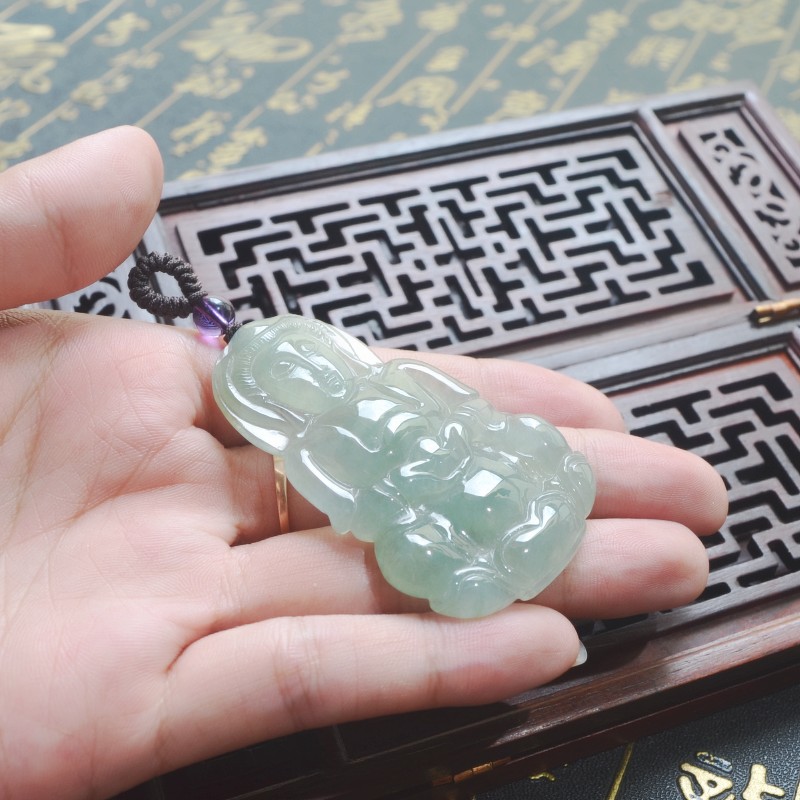 天然翡翠玉观音吊坠男士玉坠玉项链缅甸A货冰种玉石大号挂件玉坠