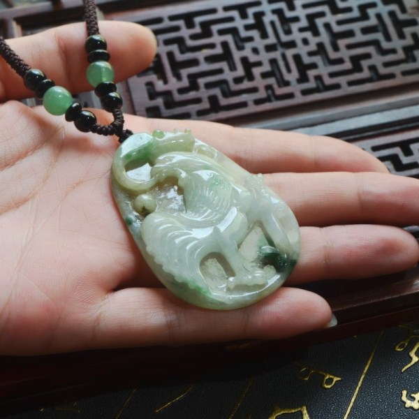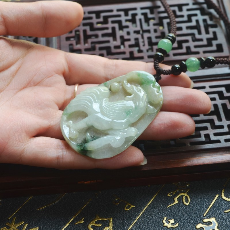 缅甸翡翠挂坠生肖鸡男女闻鸡起舞玉坠金鸡独立雄冠天下玉如意项链