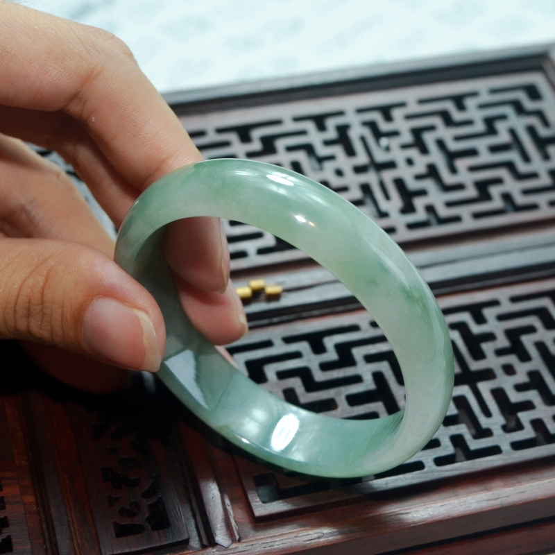 天然翡翠手镯糯种飘花玉手镯女款油青贵妃镯玉镯子玉石直径53mm