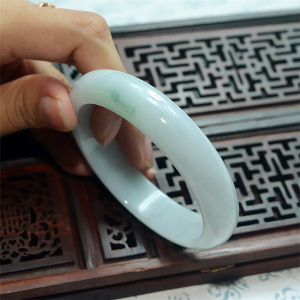 正品缅甸高档翡翠冰糯种玉镯 飘花女玉镯送女友老婆礼物直径58mm