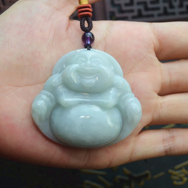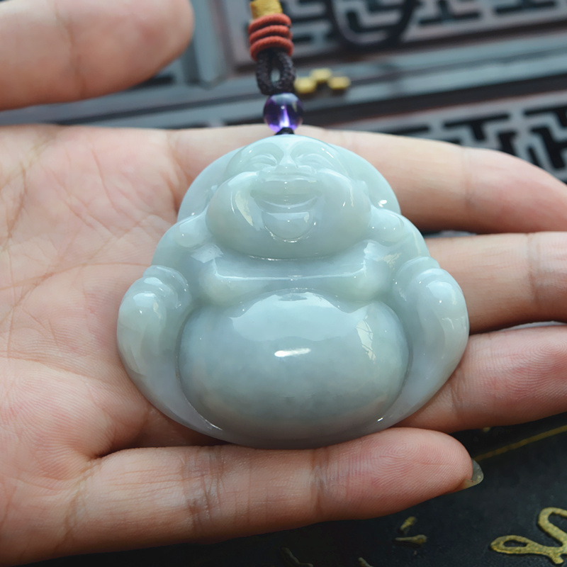 天然A货缅甸翡翠大佛公精雕翡翠笑佛男女翡翠玉佛挂件毛衣链吊坠