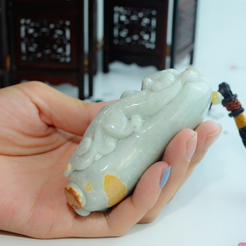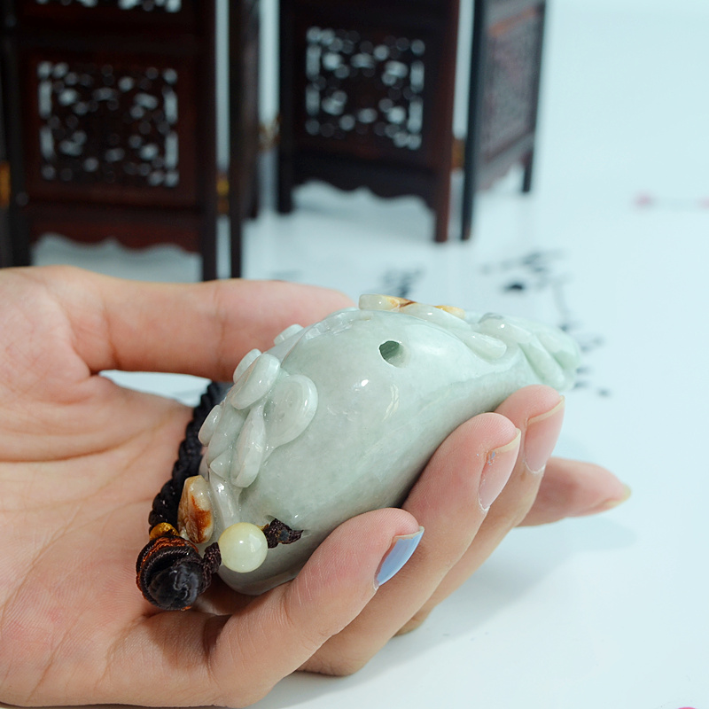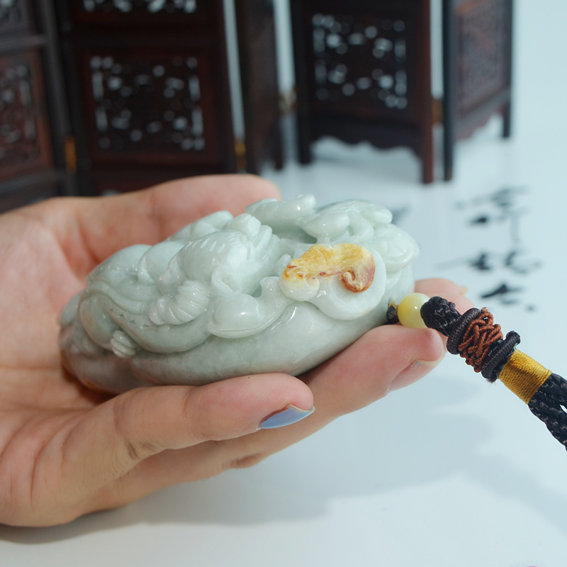 天然A货翡翠手玩件精雕翠玉貔貅手把件招财进宝生意兴隆如意花生