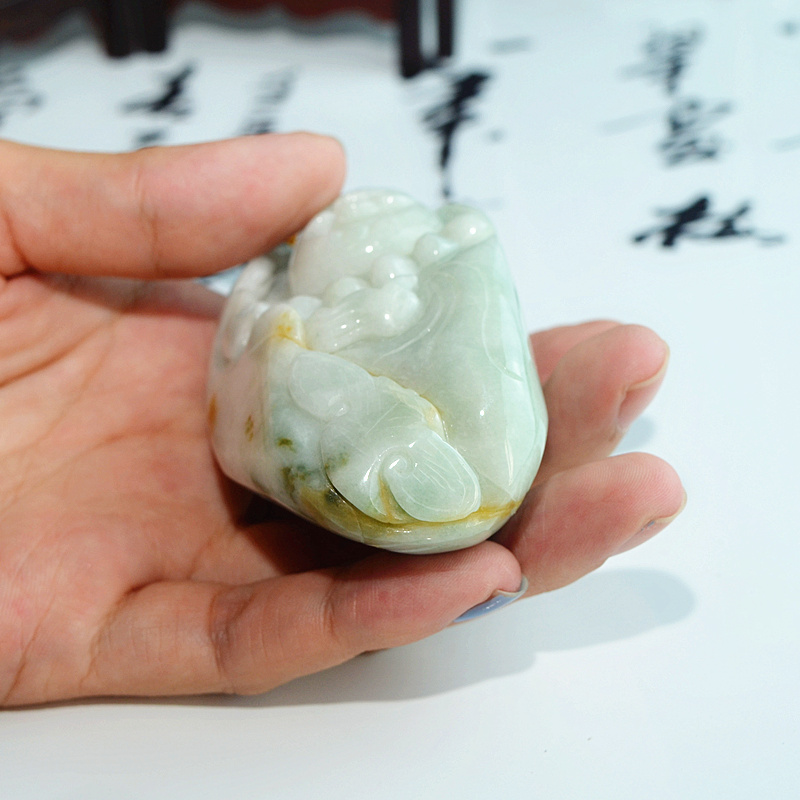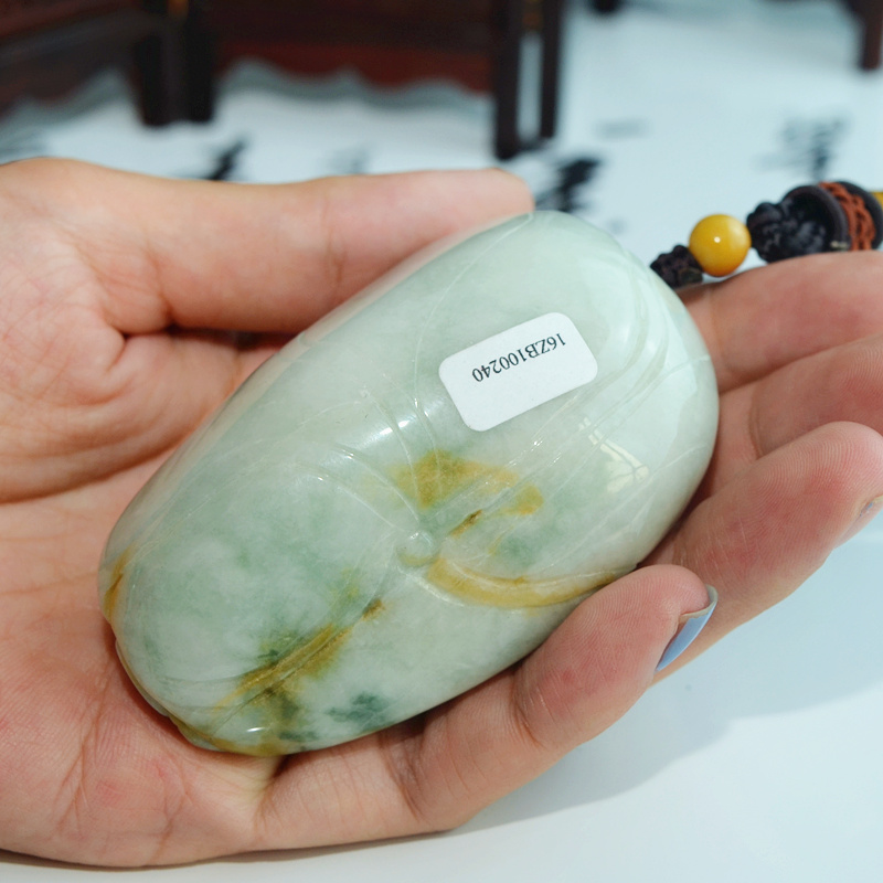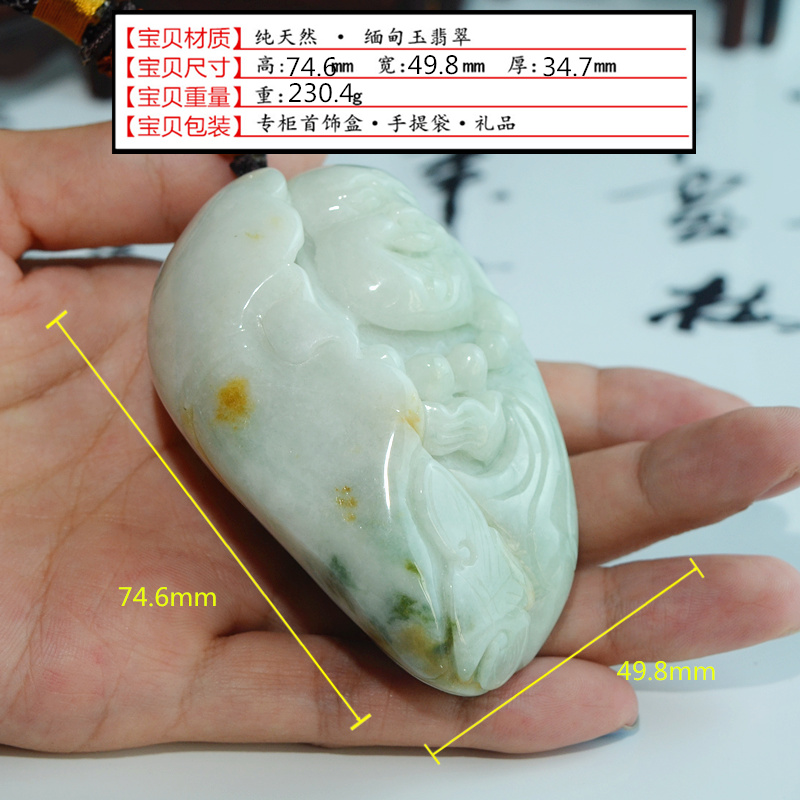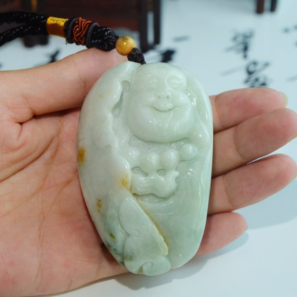 正品A货翡翠玉佛手玩件缅甸玉器弥勒佛手把件巧色笑佛手玩件