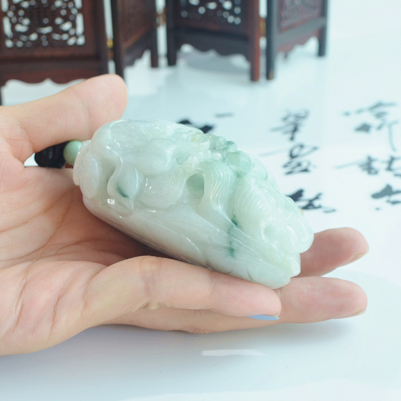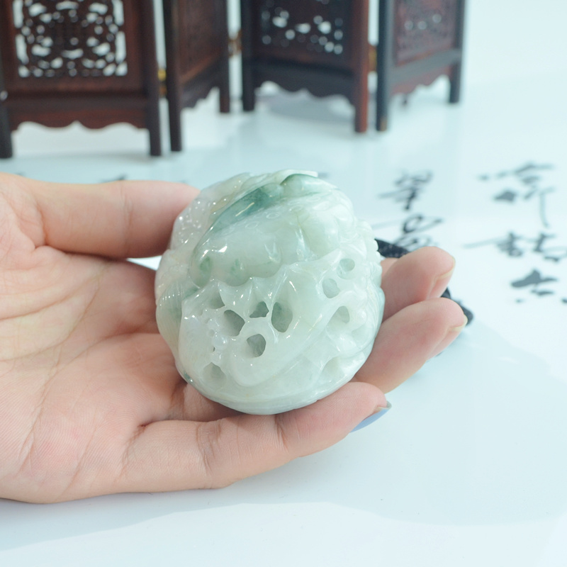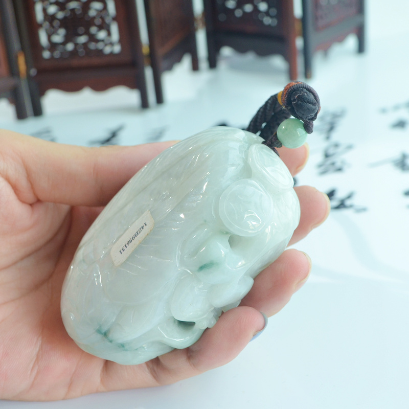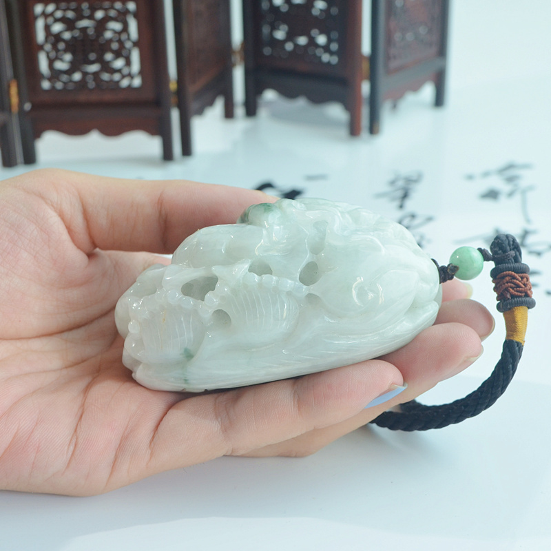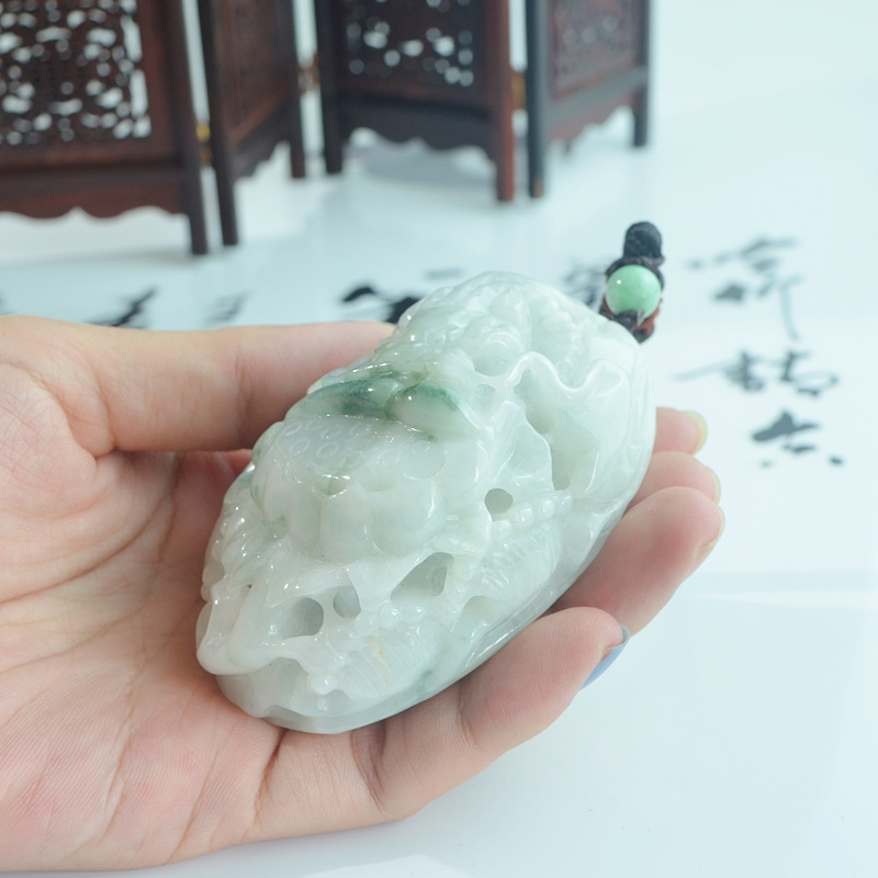 缅甸玉翡翠生意兴隆手把件多子多福手玩件玉鱼跃龙门 龙头鱼飘花