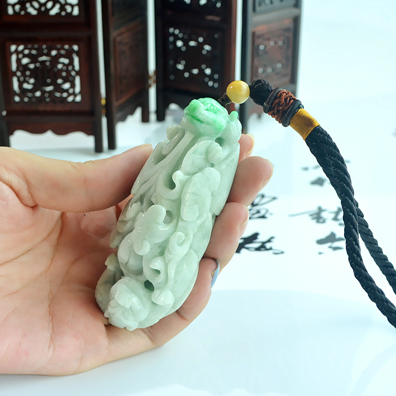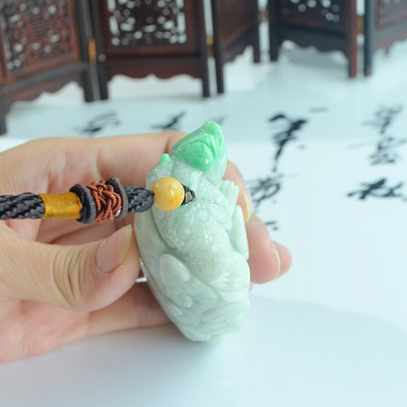 翡翠三脚金蟾蜍吊坠男女招财翡翠三角挂件天然缅甸玉石手把件玩件