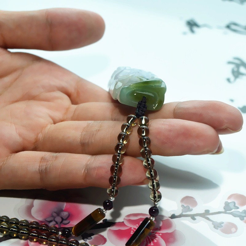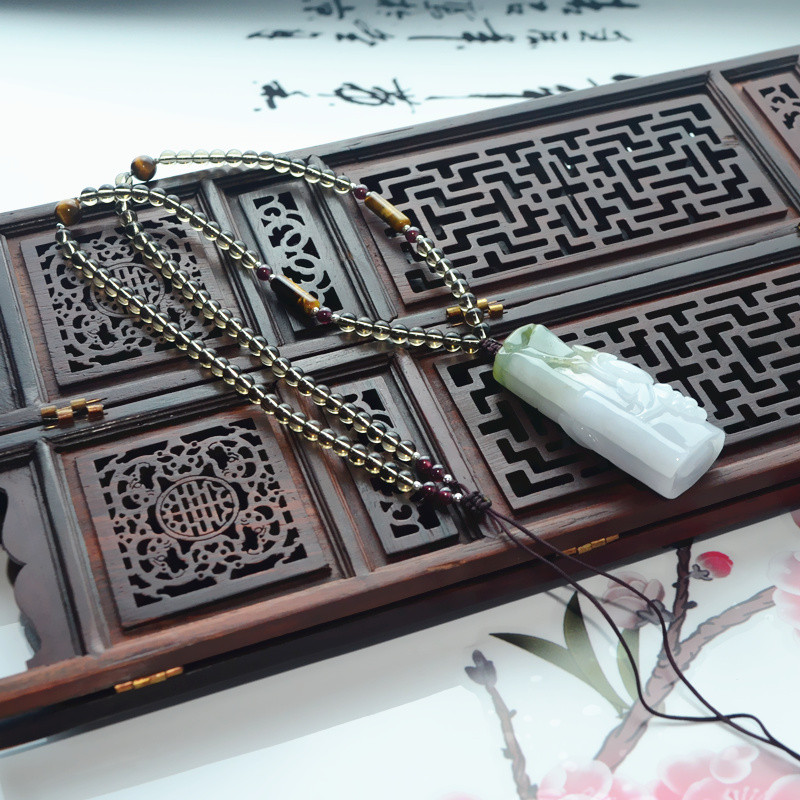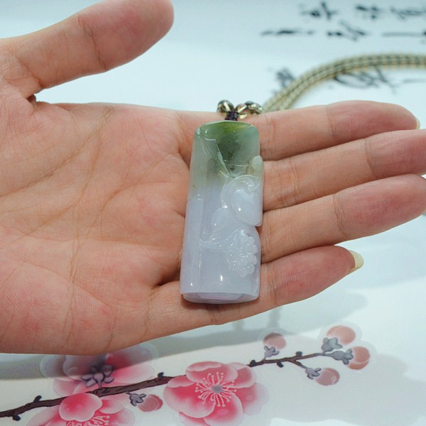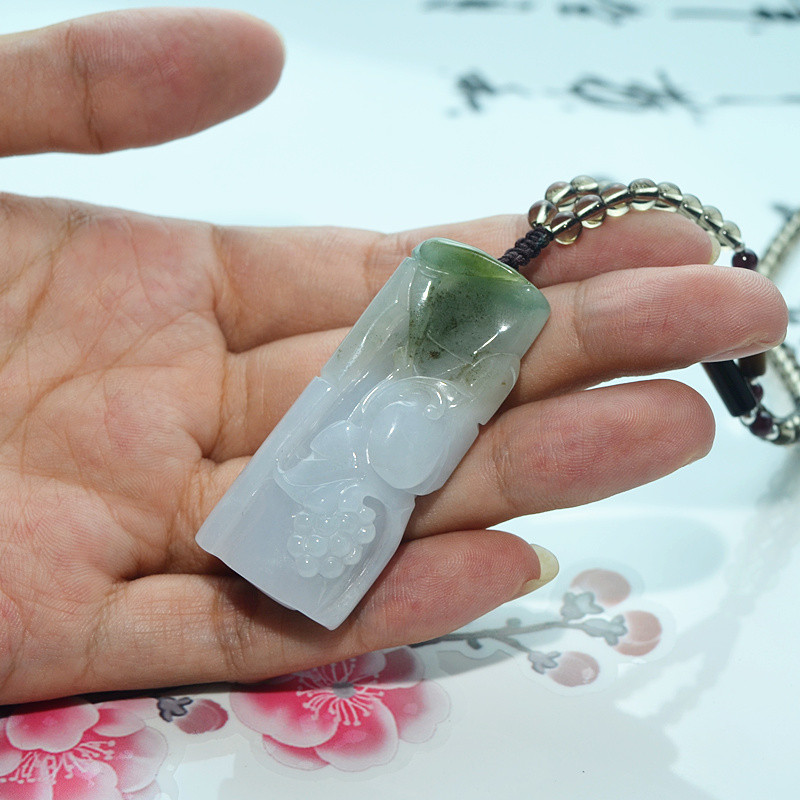 天然翡翠节节高吊坠立体精工玉竹节如意富贵竹节节高男女情侣玉坠