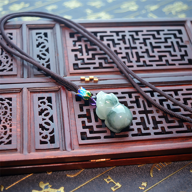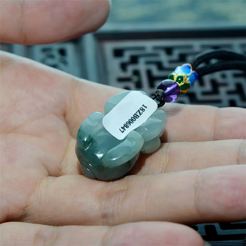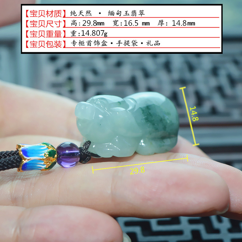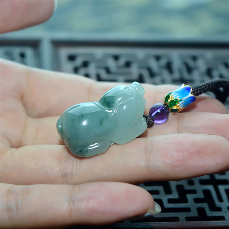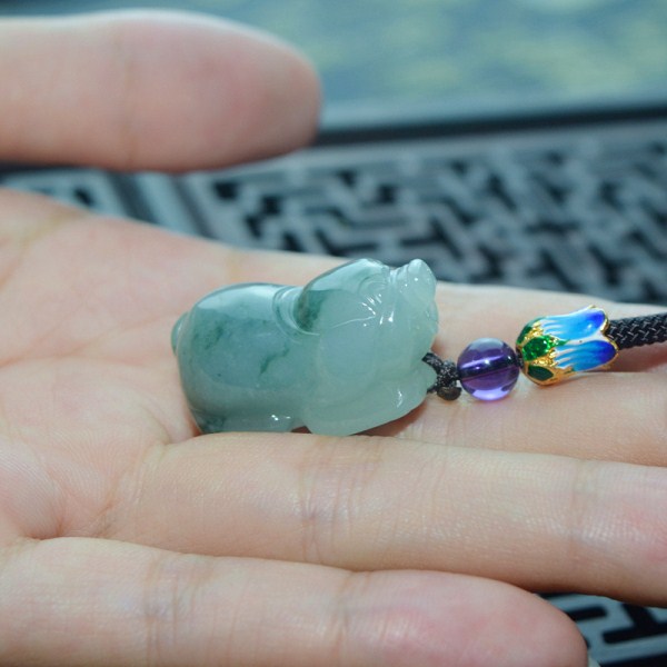天然飘花翡翠玉猪发财猪招财进宝保平安玉猪属猪吊坠男女款挂件