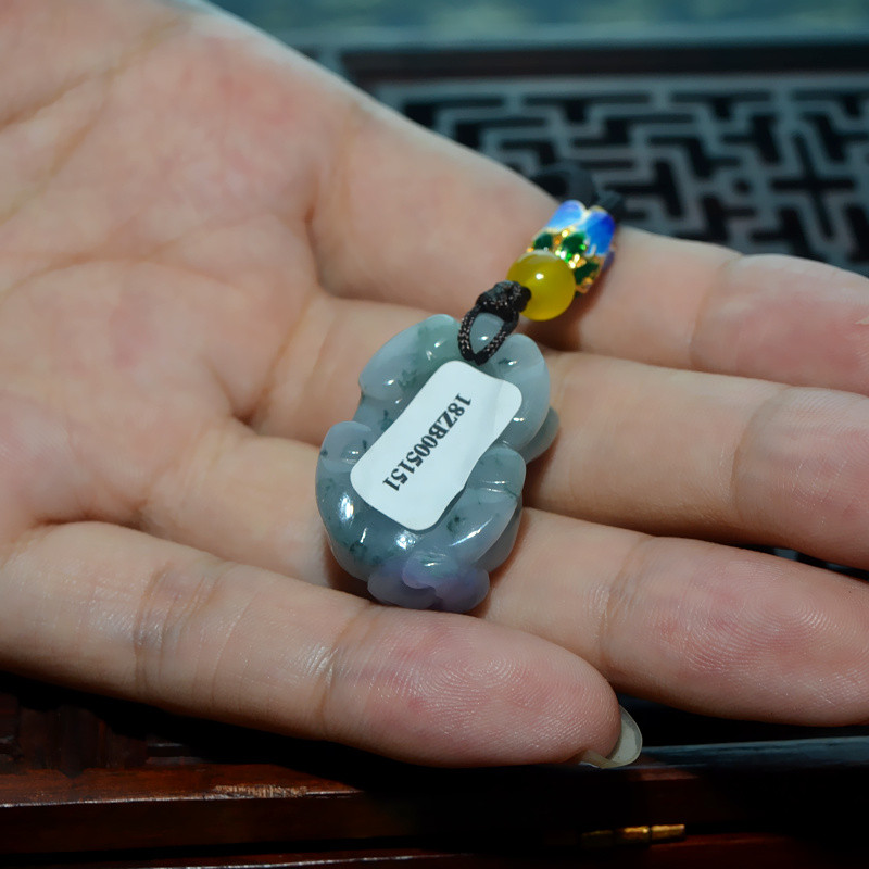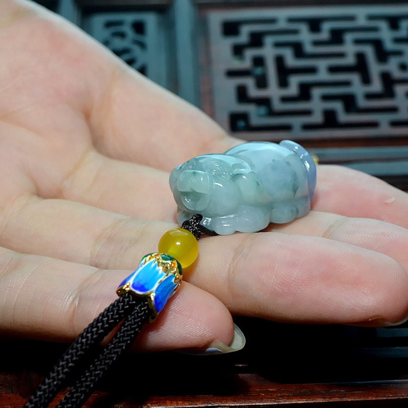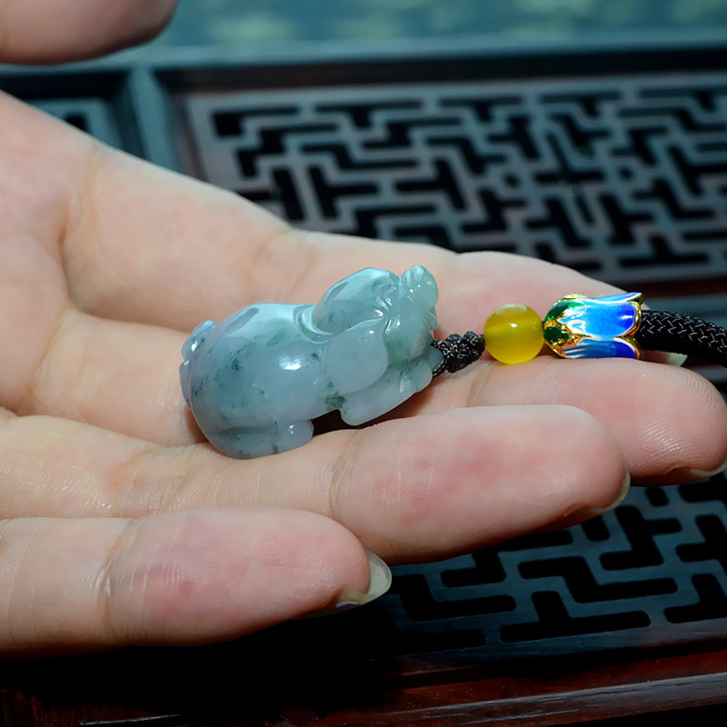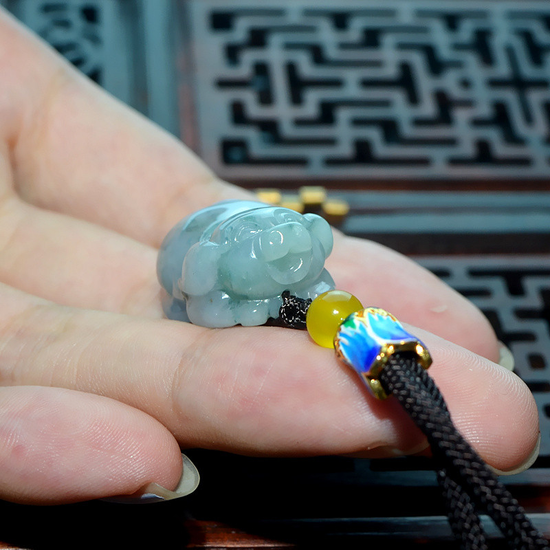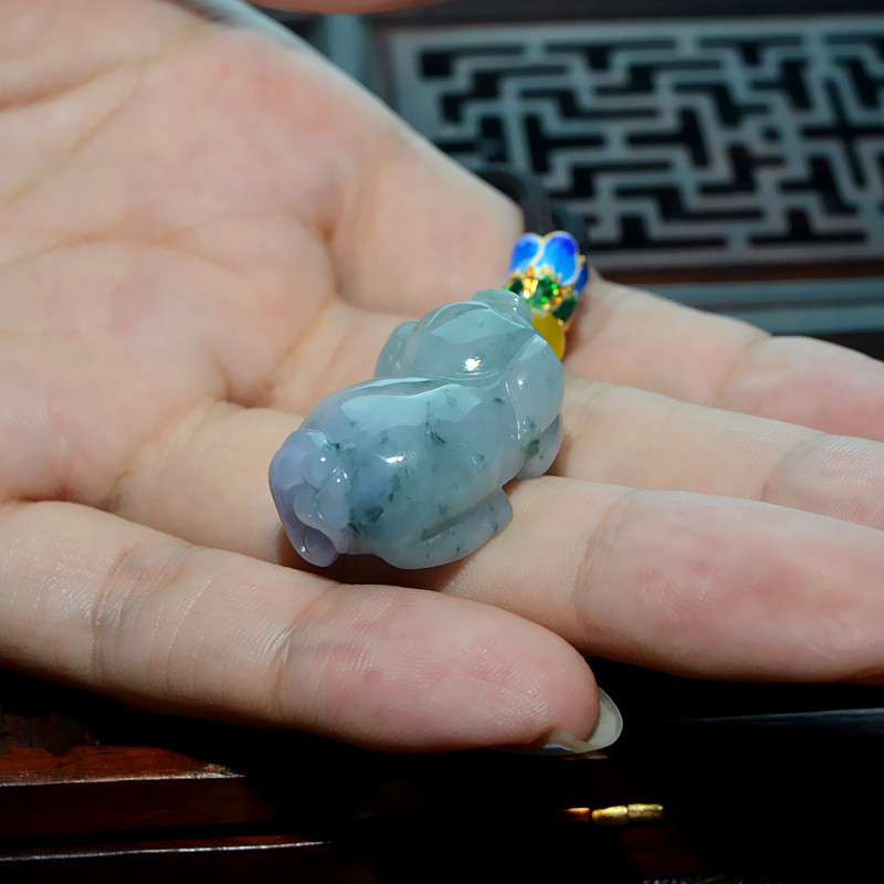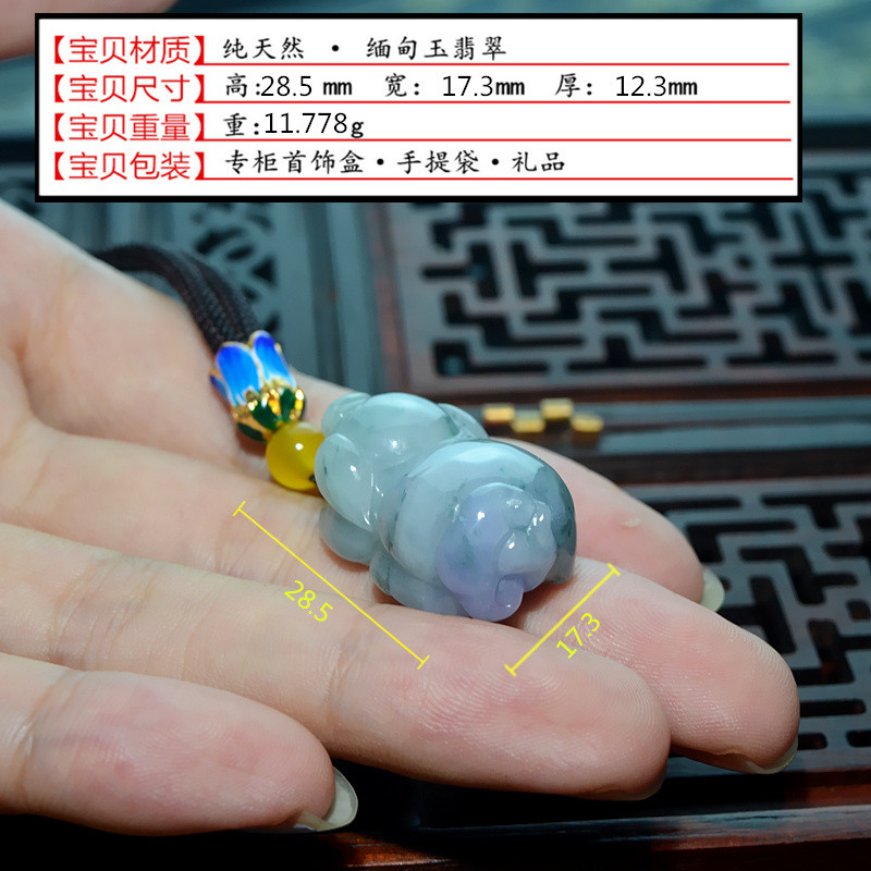 立体飘花带紫高档精雕生肖小猪天然缅甸玉翡翠玉猪发财如意猪吊坠