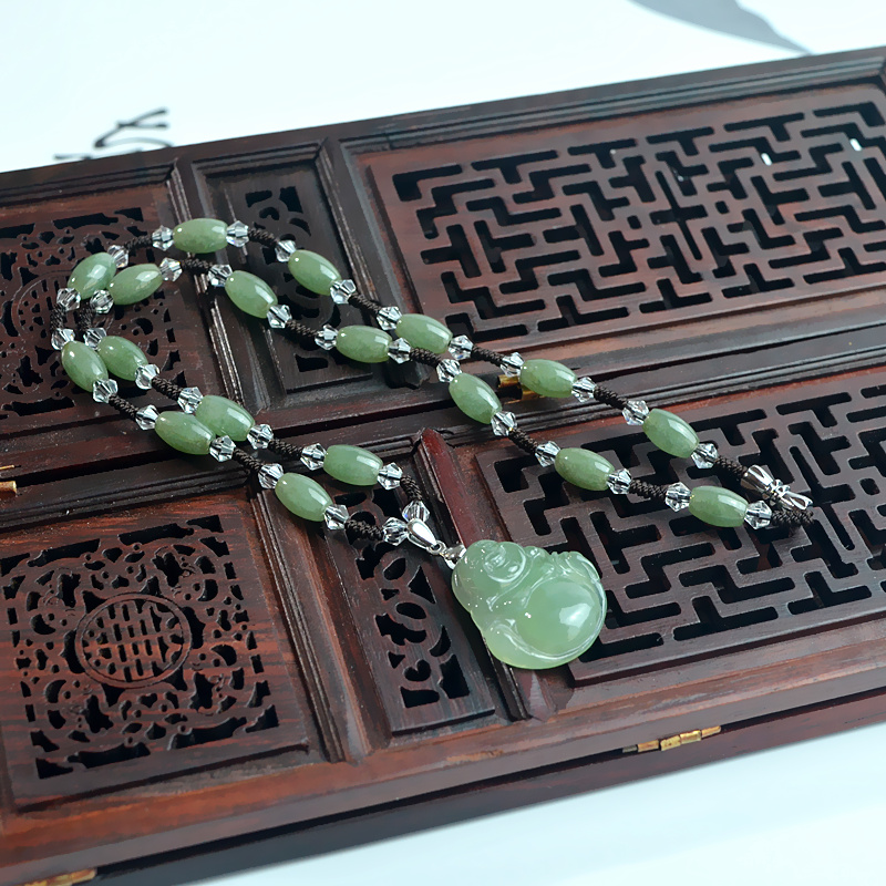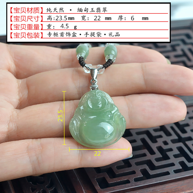 天然翡翠玉佛吊坠项链玉坠翡翠吊坠弥勒佛玉坠缅甸玉石女款挂件