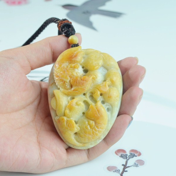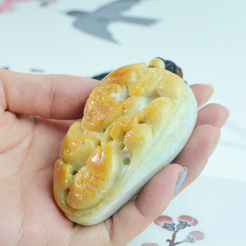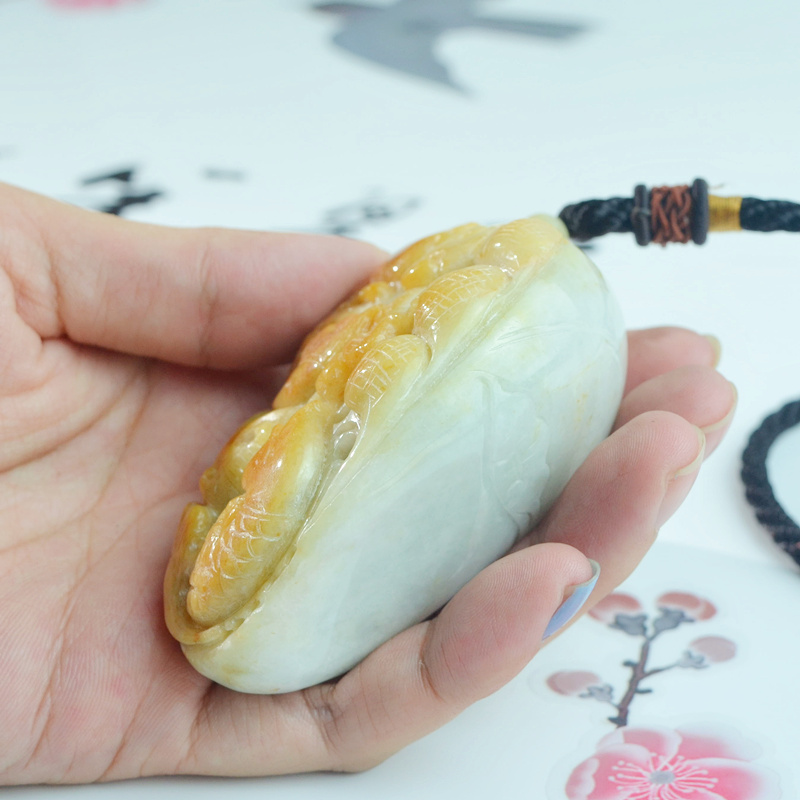 缅甸玉天然金玉满堂手把件翡翠金鱼把件好事成双年年有余把玩件