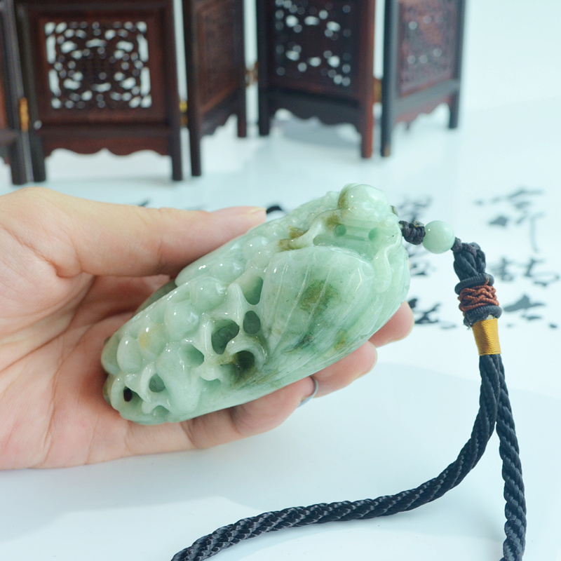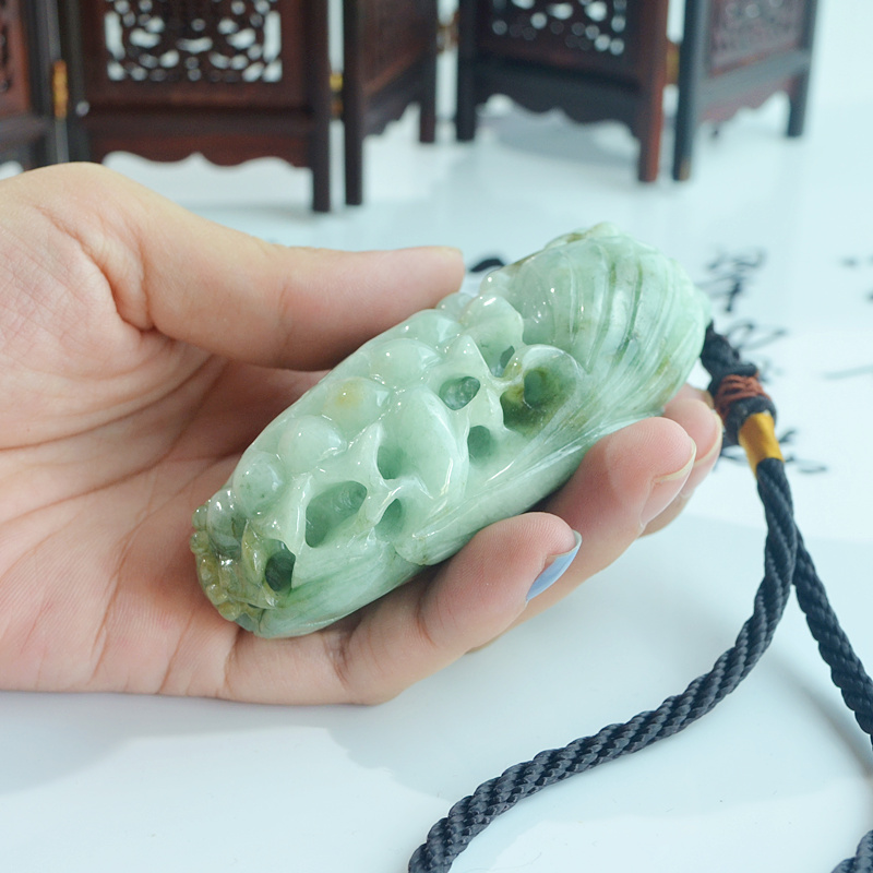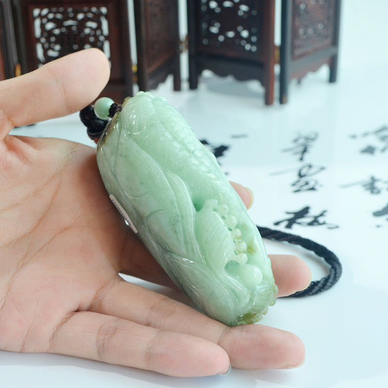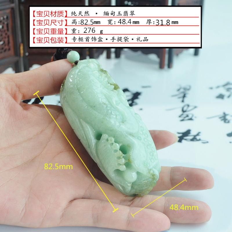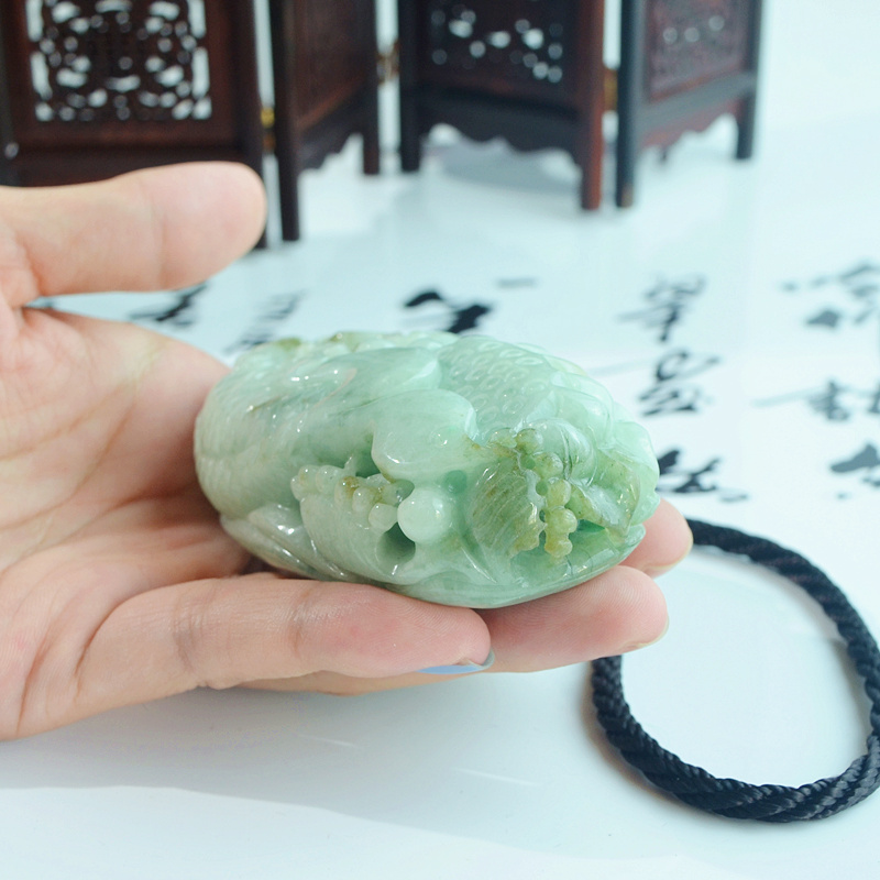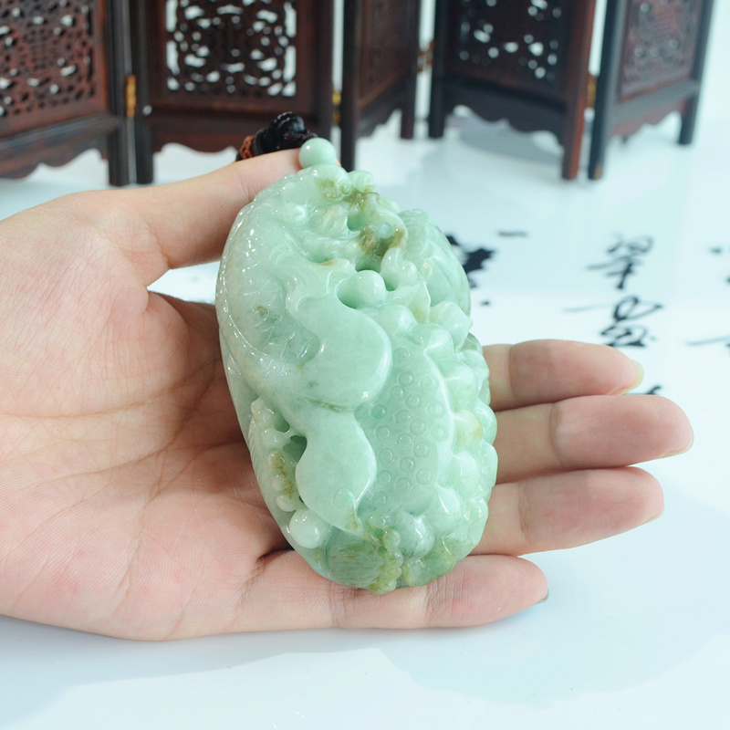 正品缅甸玉翡翠A货冰糯种神兽龙头貔貅阳绿手把件手玩件带证书