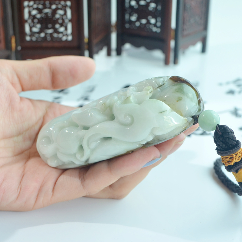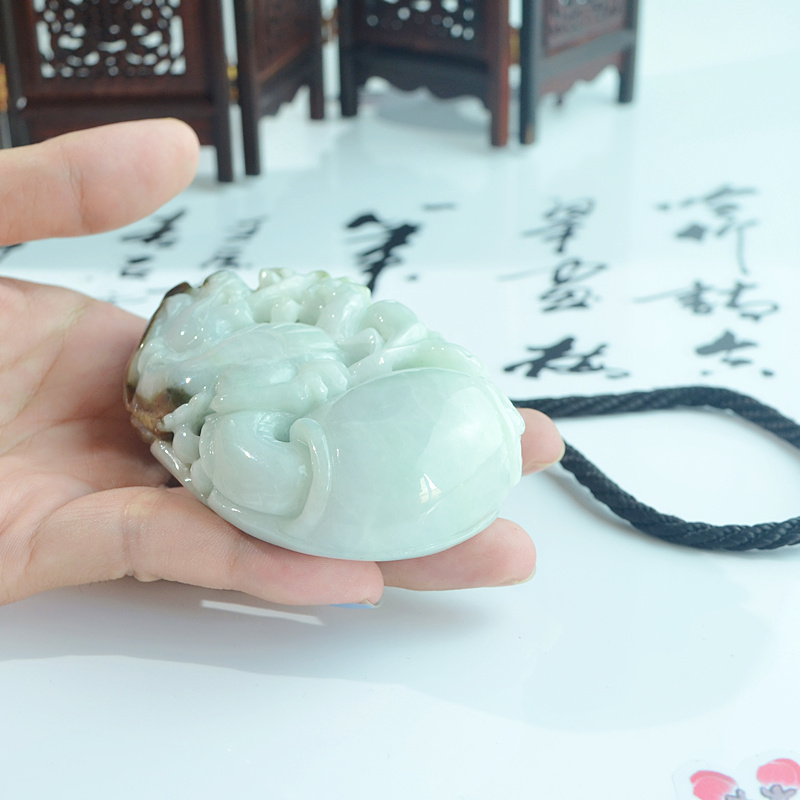 缅甸玉天然a货翡翠龙手把件生意兴隆手玩件玉石吉祥如意把玩件