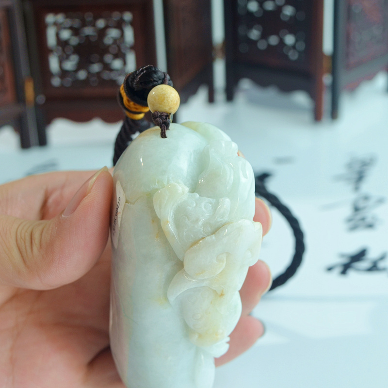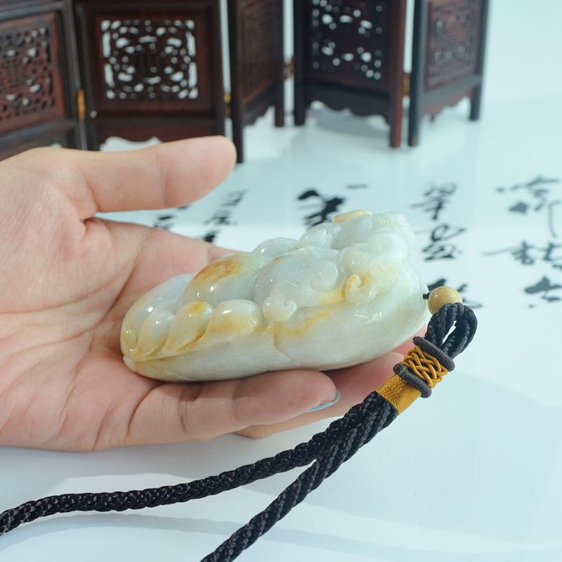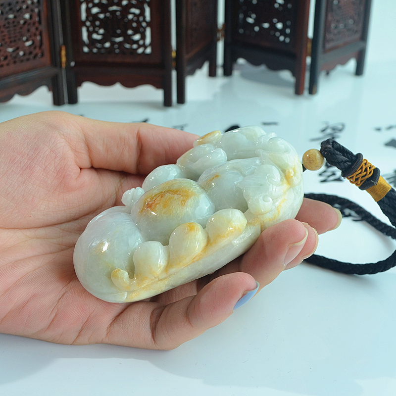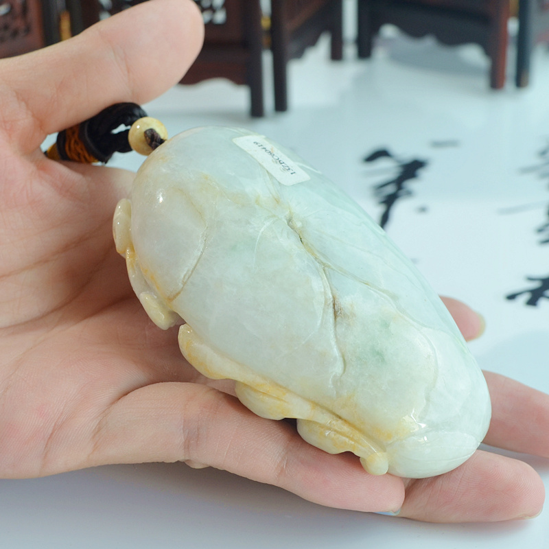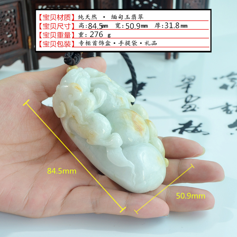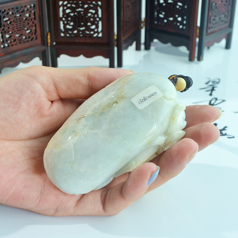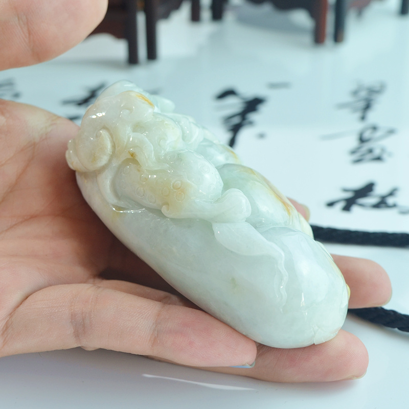 正品缅甸玉天然翡翠招财进宝手把件玉皮丘手玩件玉雕貔貅把玩件