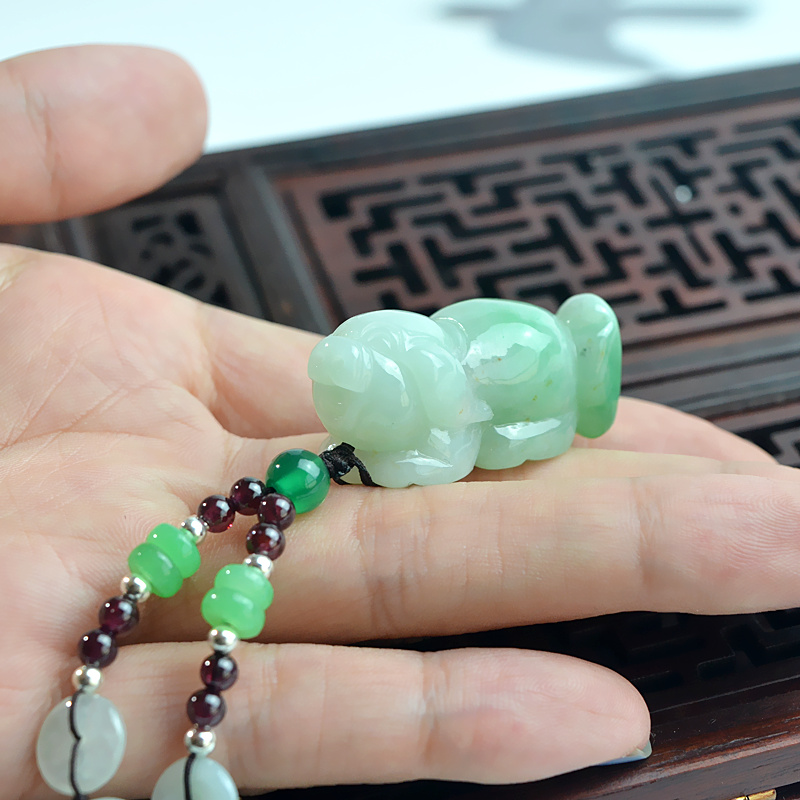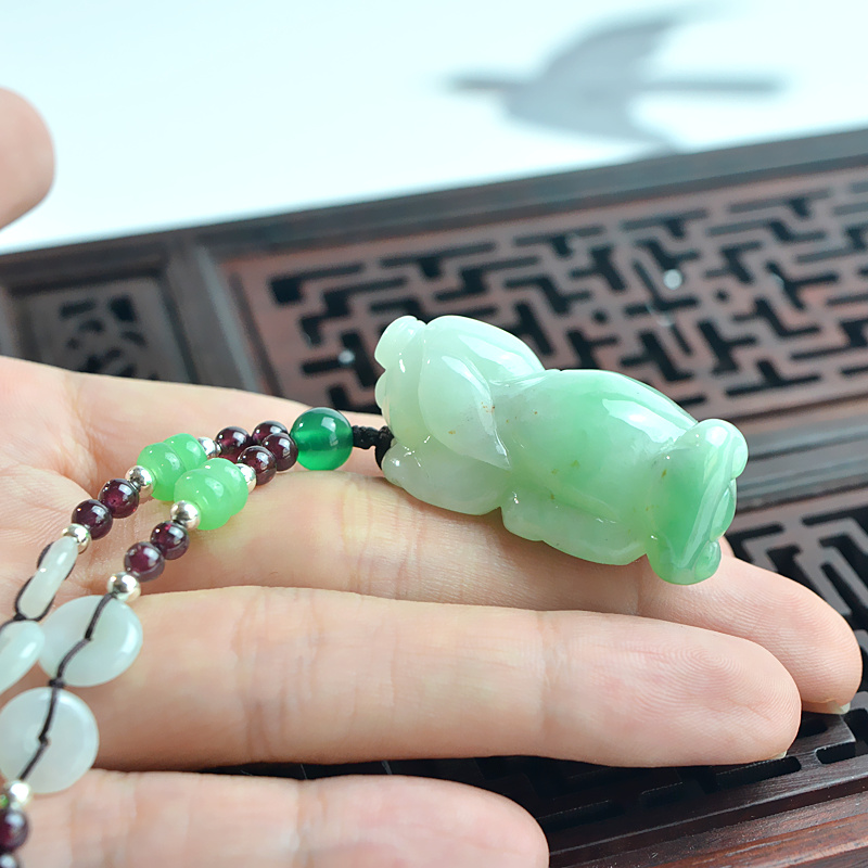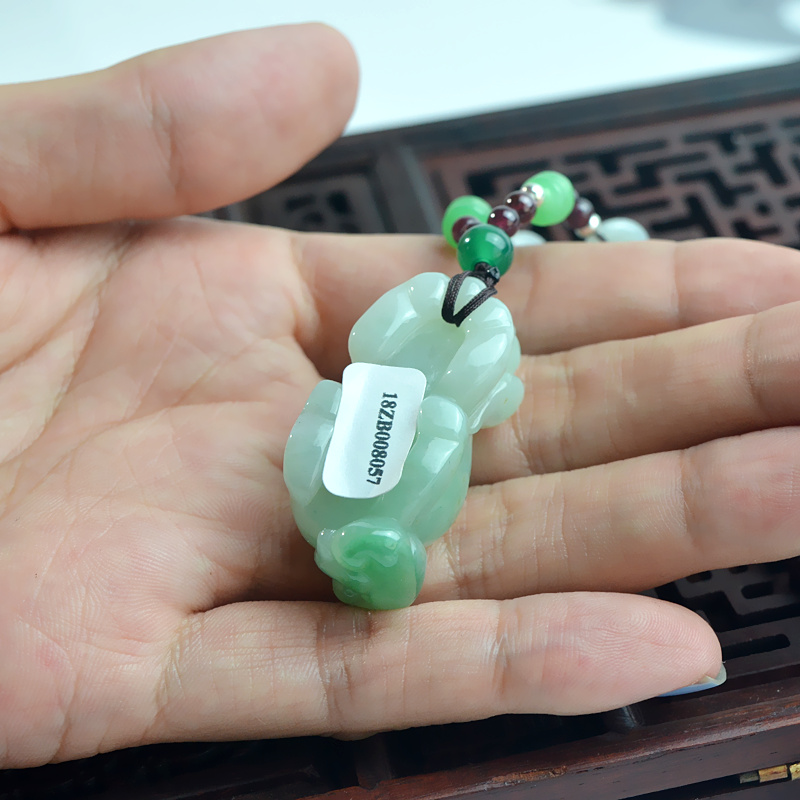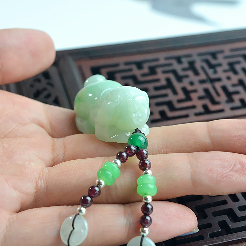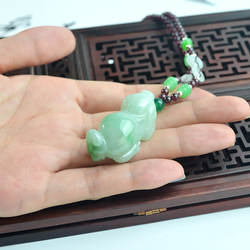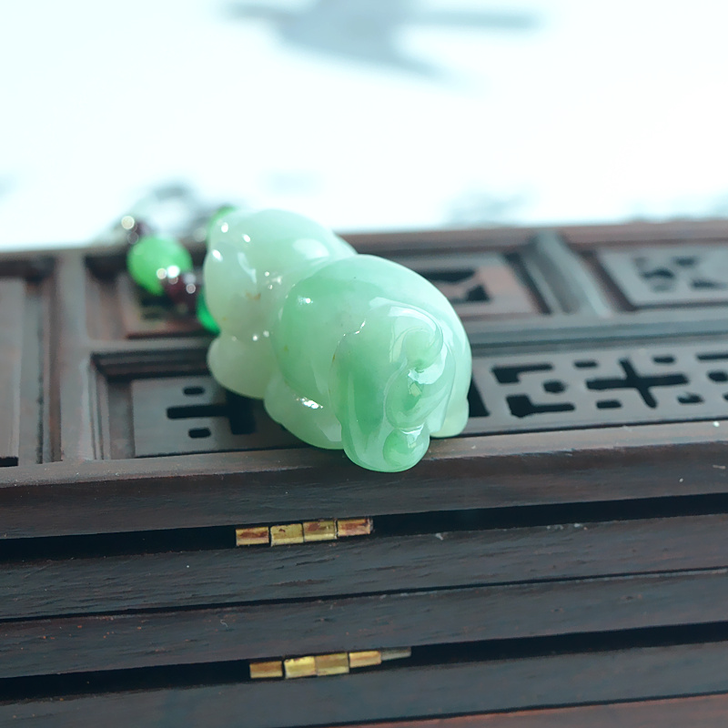 正品a货缅甸玉天然翡翠十二生肖立体猪挂件带绿男女款如意项链
