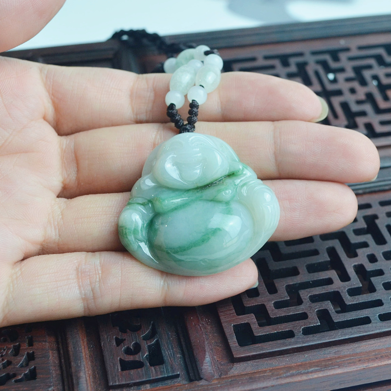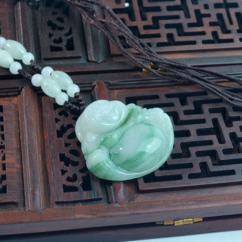 特价玉佛吊坠女款笑佛天然翡翠大肚弥勒佛佛公正品缅甸玉石带证书