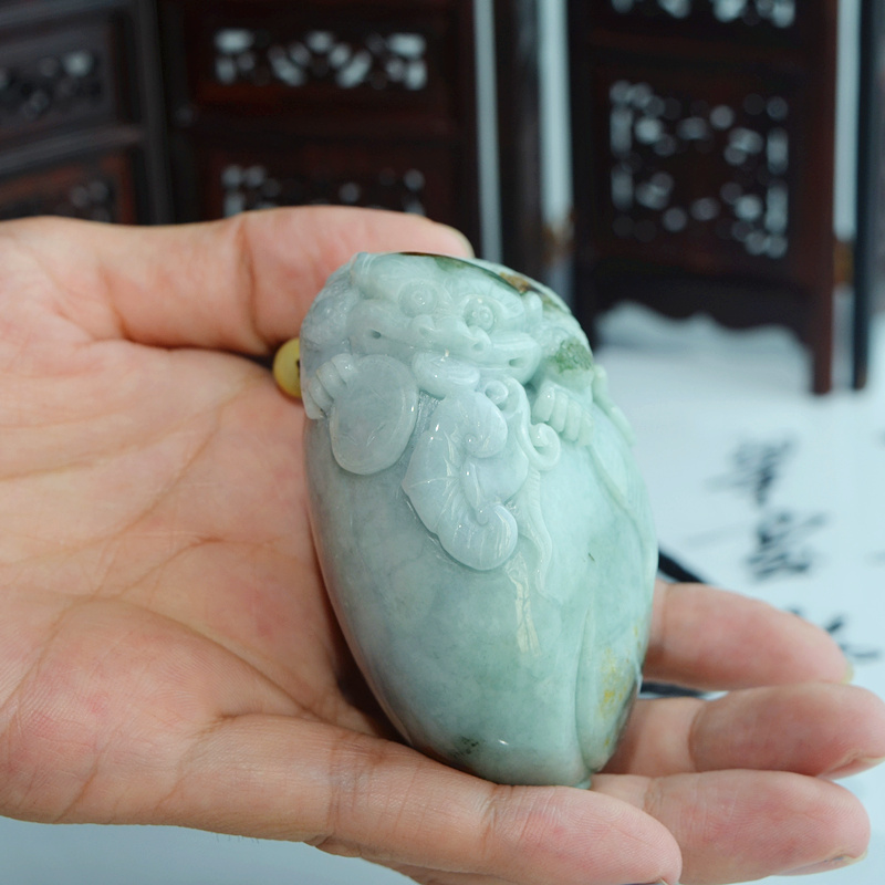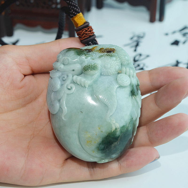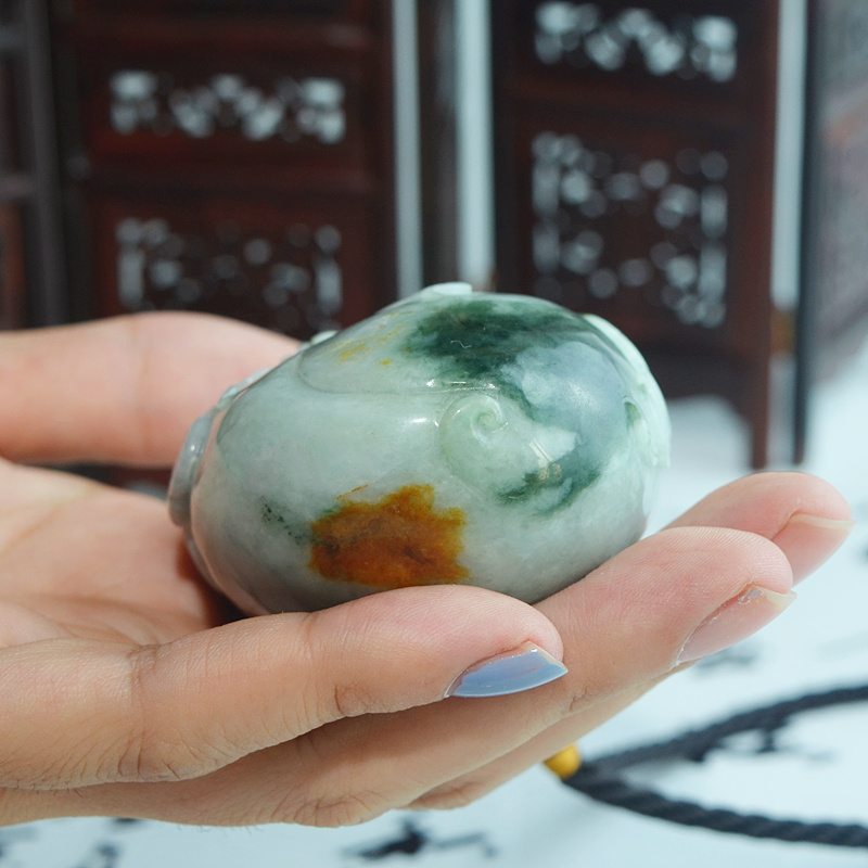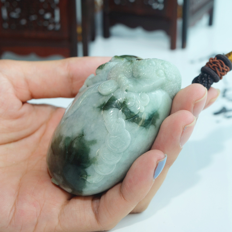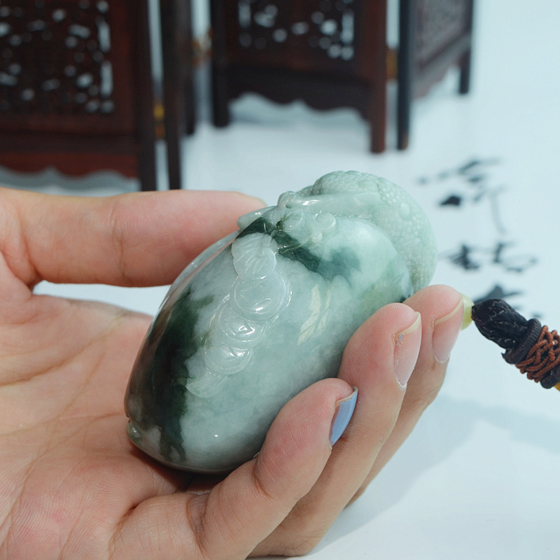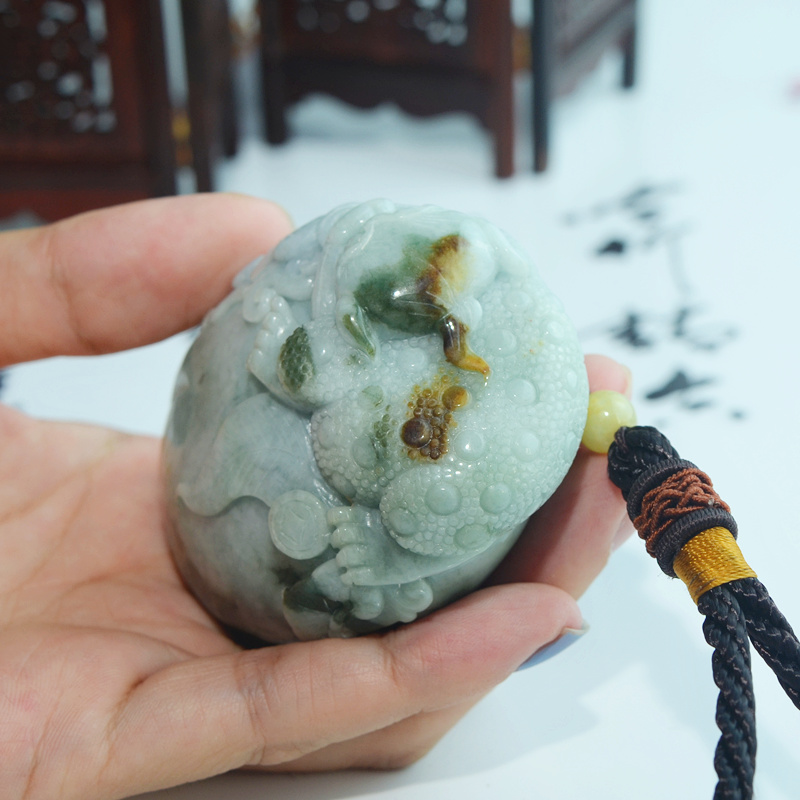天然翡翠手把件 a货翡翠三脚蟾把件 玉蟾蜍手玩件 玉雕金蟾把玩件