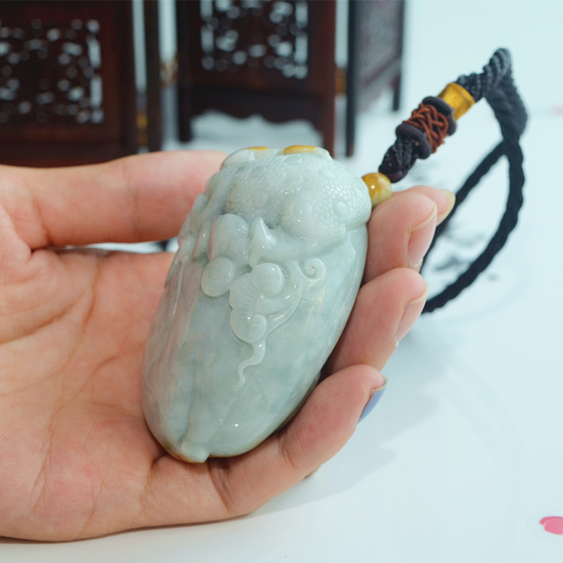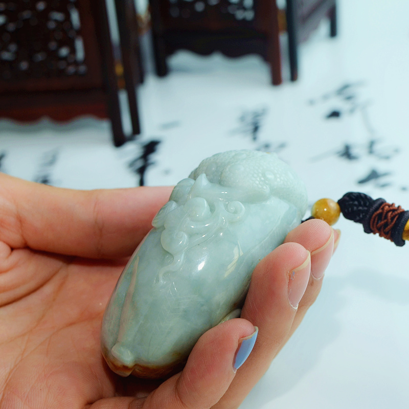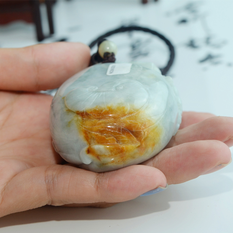 翡翠三脚蟾手玩件天然缅甸飘黄翡瑞兽三足金蟾五毒辟邪金蟾手把件