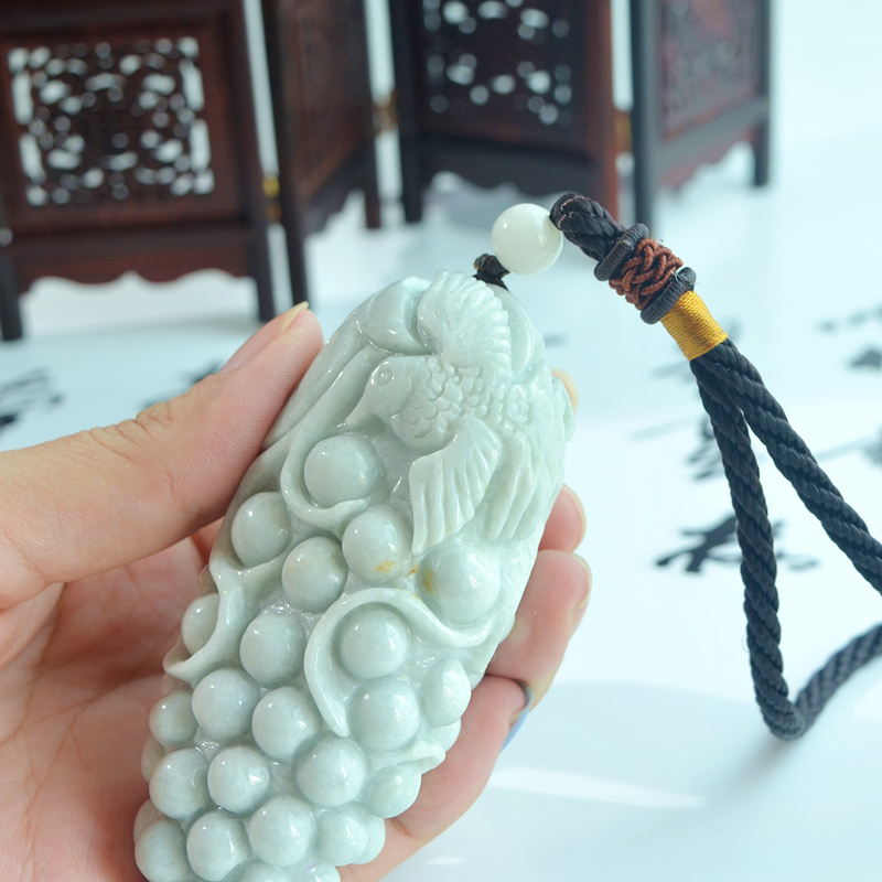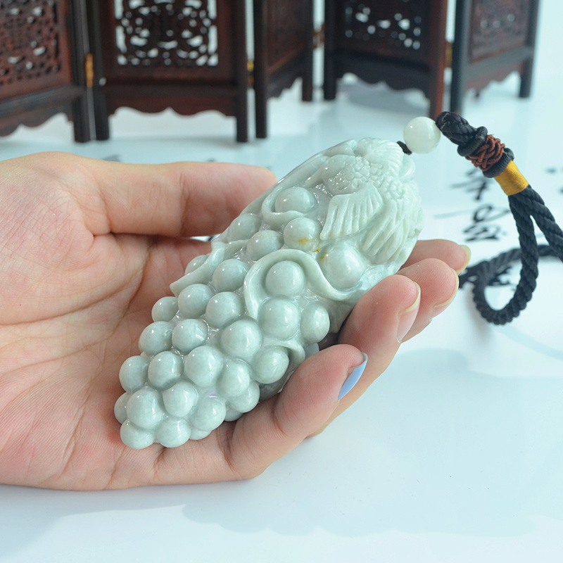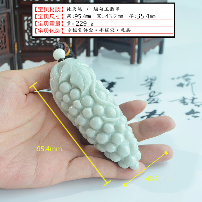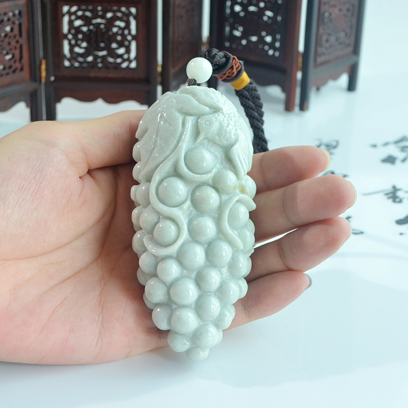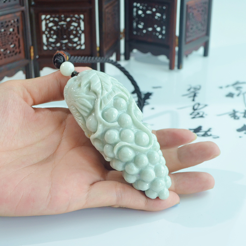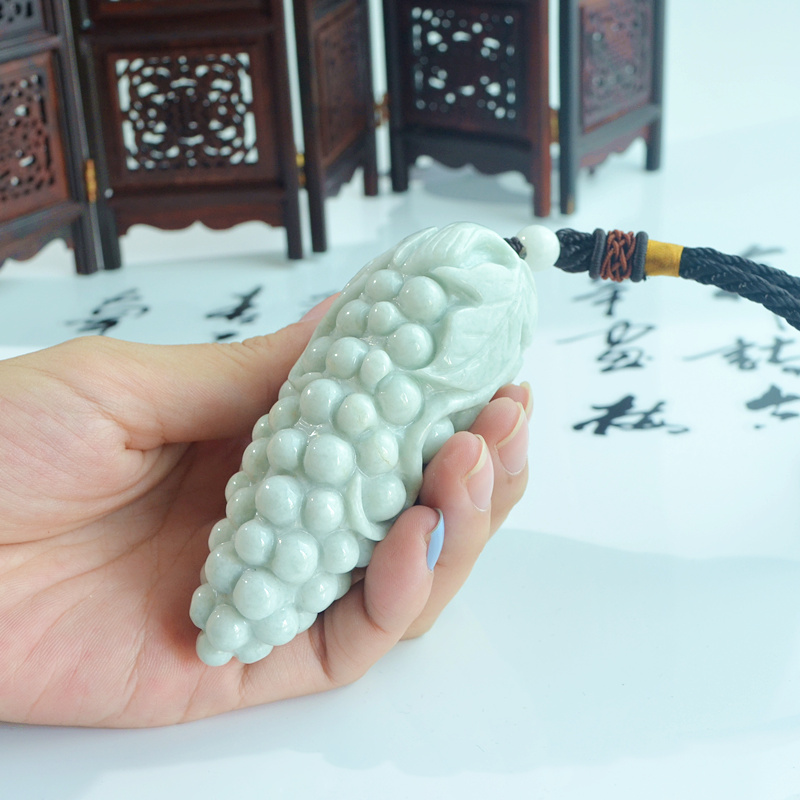 正品A货缅甸翡翠老坑葡萄手把件/男士玉石手玩件多子多福如意把件