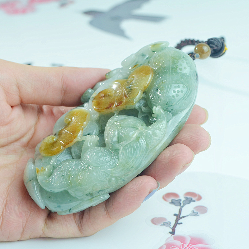 天然翡翠缅甸玉金蟾把件玉蟾把件黄翡三脚蟾手玩件生意兴隆手把件