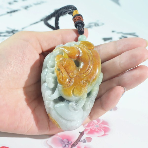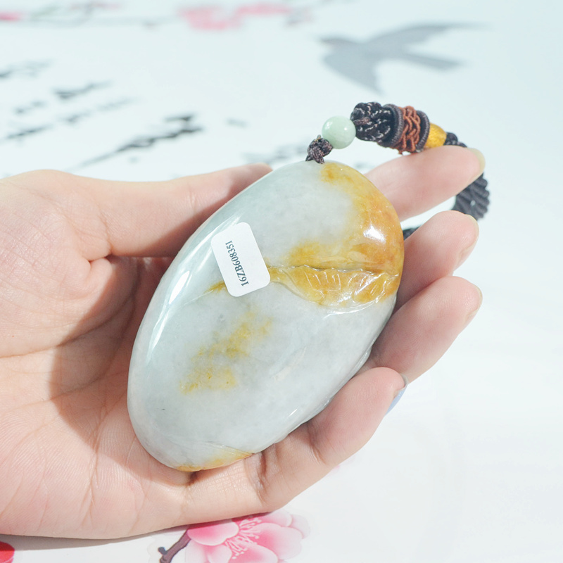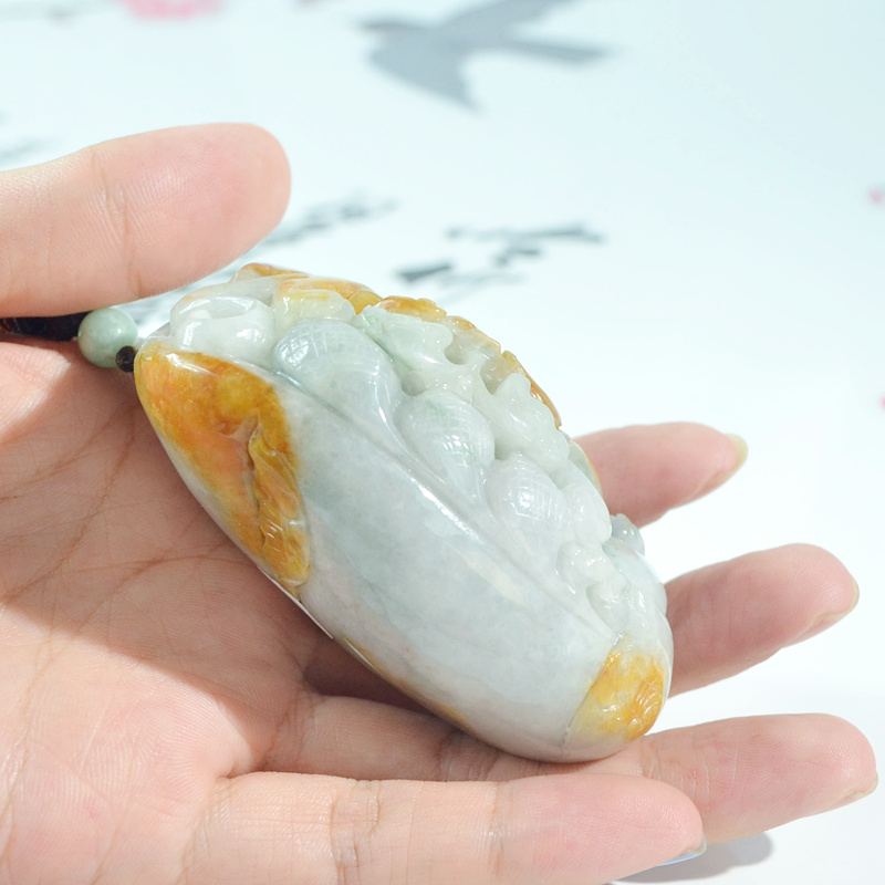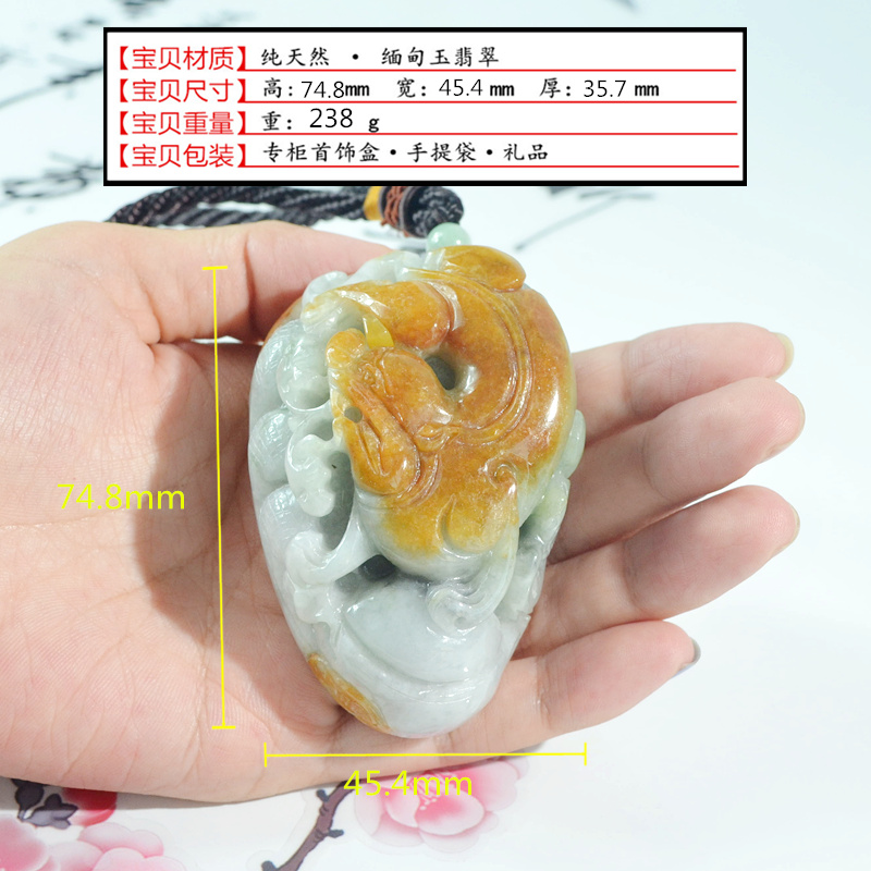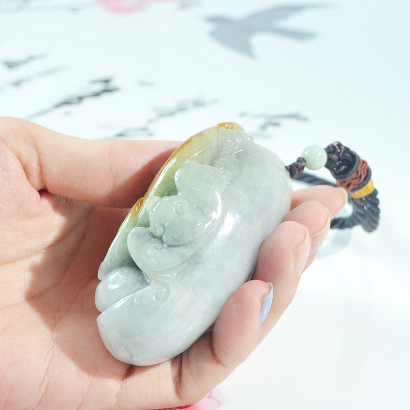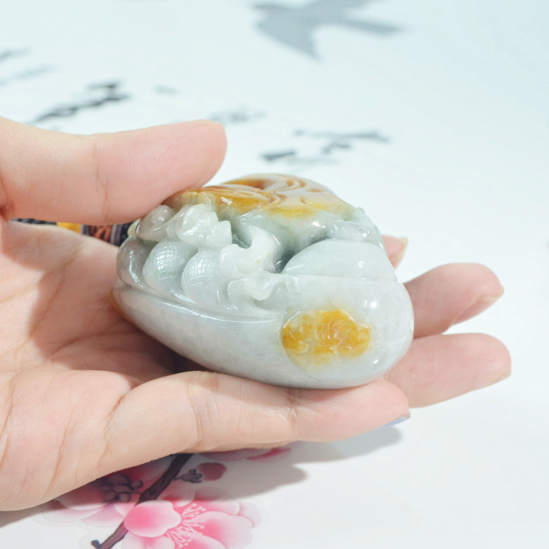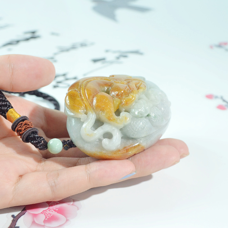 天然缅甸玉a货黄翡翠猛虎下山手把件 玉虎手玩件 虎虎生威把玩件