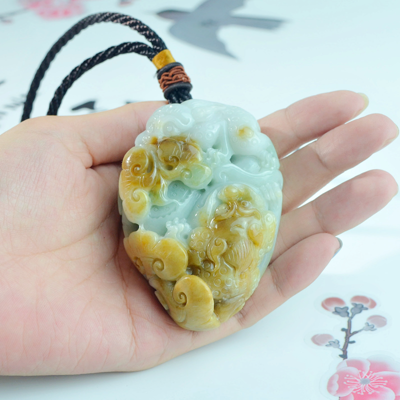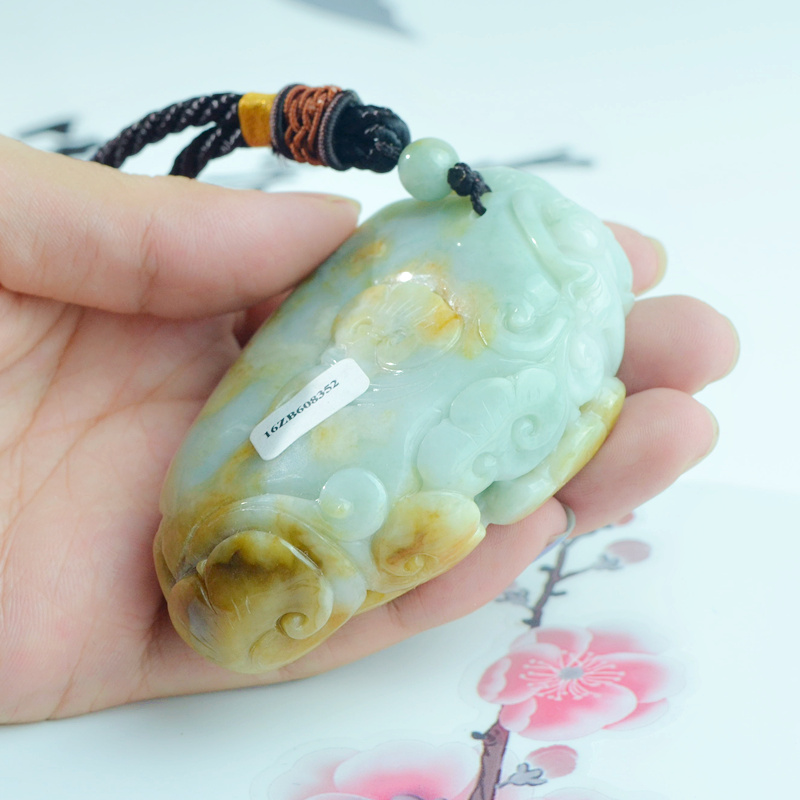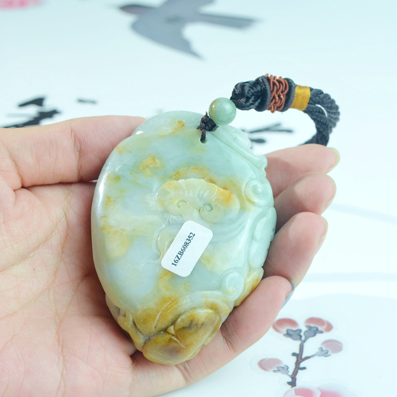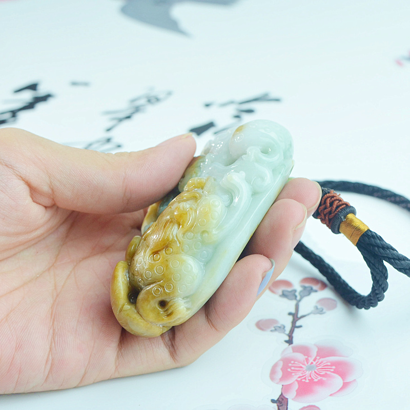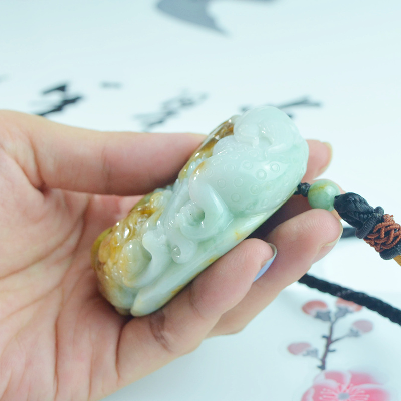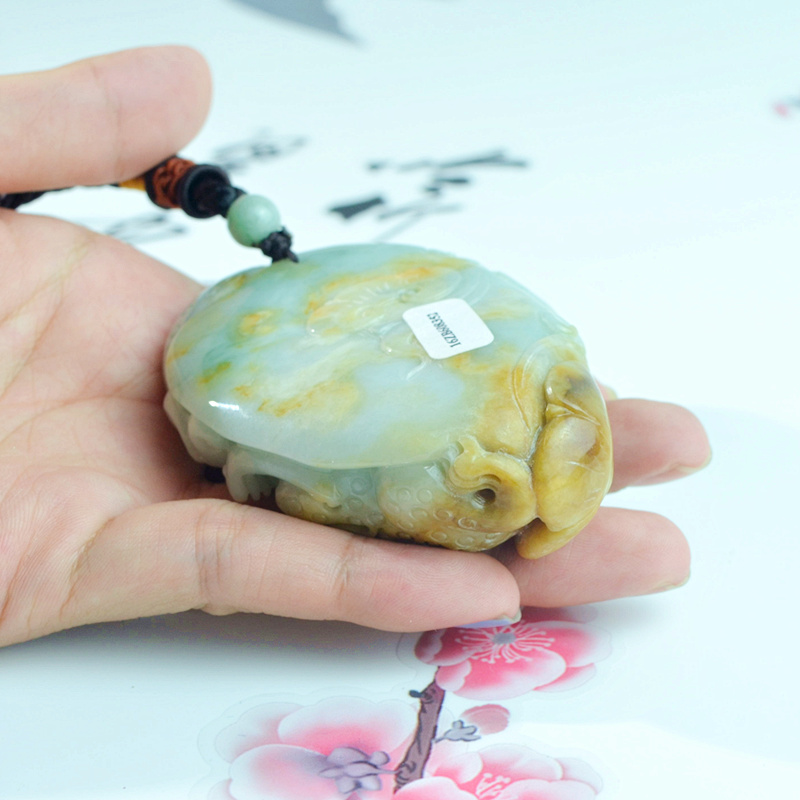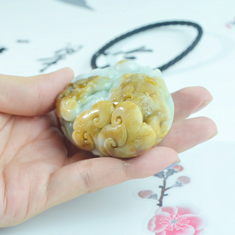 黄翡手把件 缅甸玉翡翠三脚蟾把件 玉蟾蜍手玩件 玉雕金蟾把玩件
