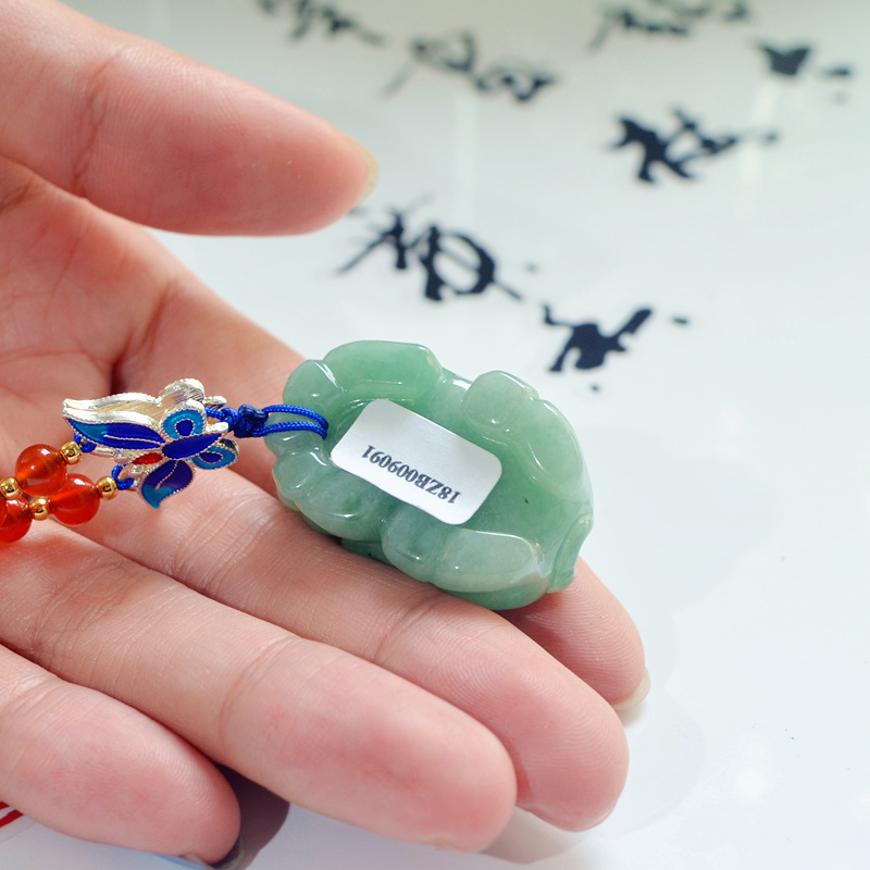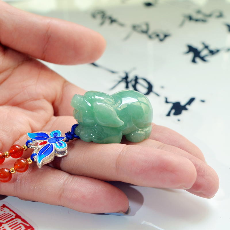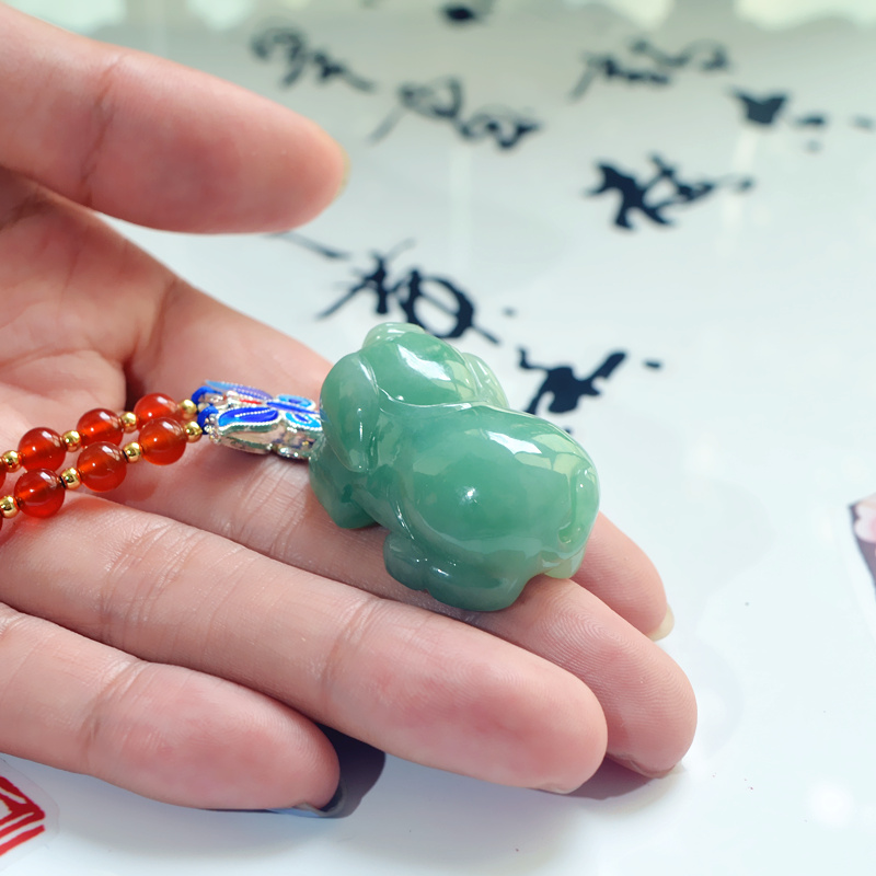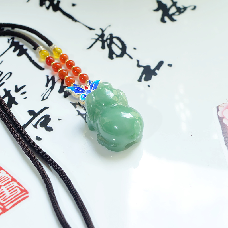 正品飘花带绿翡翠吊坠生肖玉猪挂件立体玉石玉坠男女款项链民族风