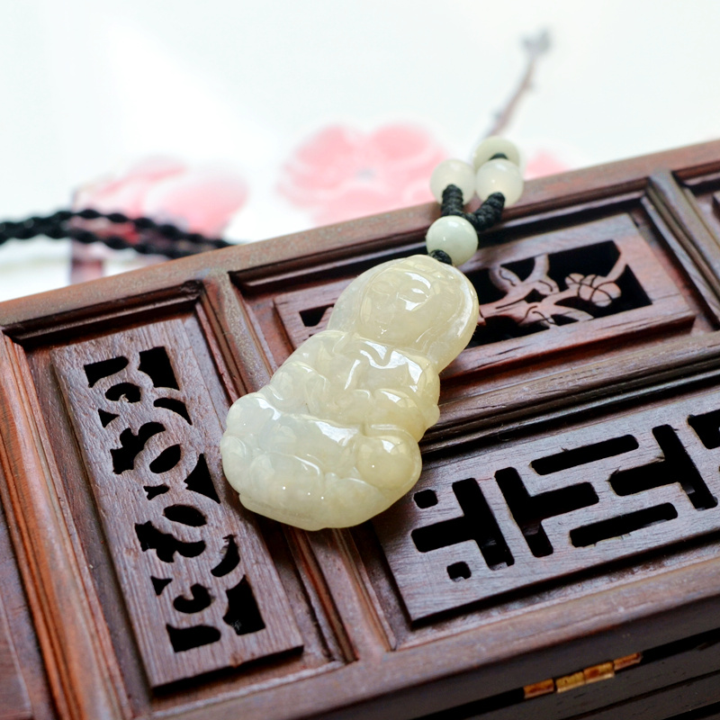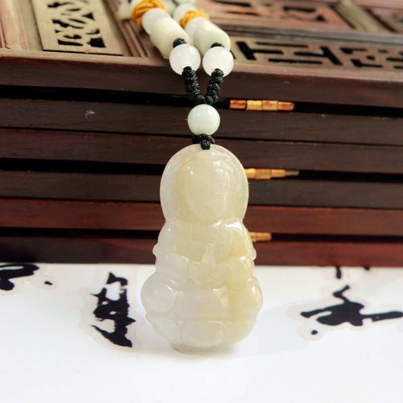 翡翠玉观音吊坠黄翡翠a货玉观音挂件男士小款款菩萨挂件儿童玉坠