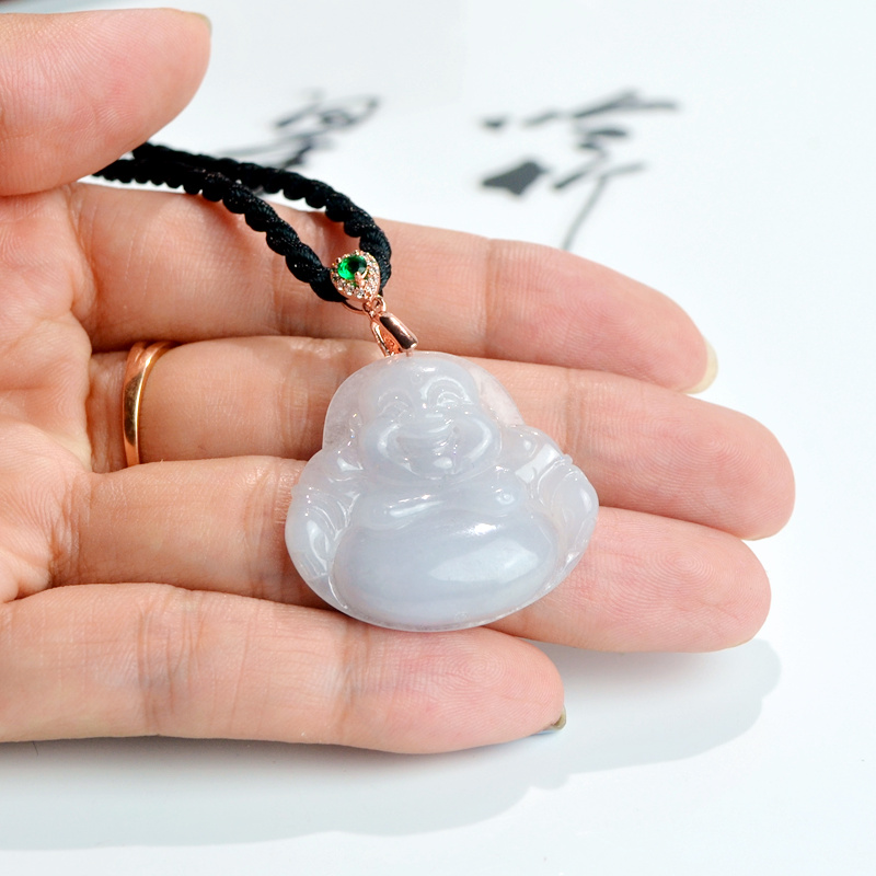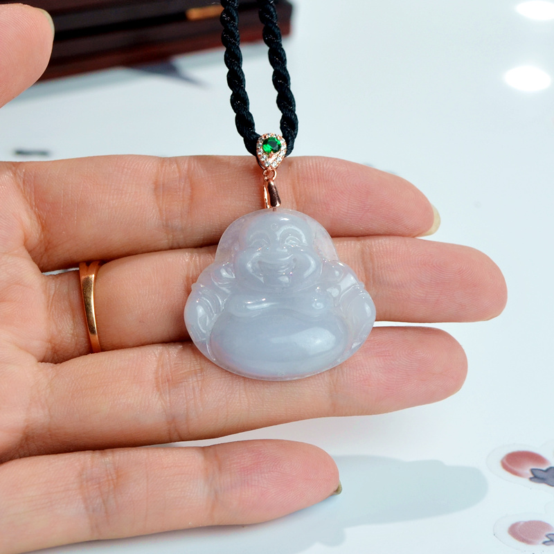 天然缅甸玉A货翡翠玉佛公吊坠中小号笑佛大肚佛挂件女款弥勒佛