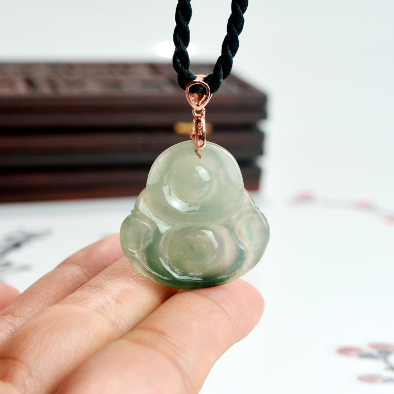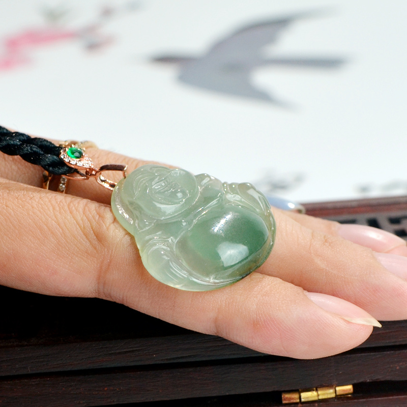 冰透缅甸玉翡翠玉佛吊坠女款笑佛天然A货弥勒佛公玉项链玉石挂件