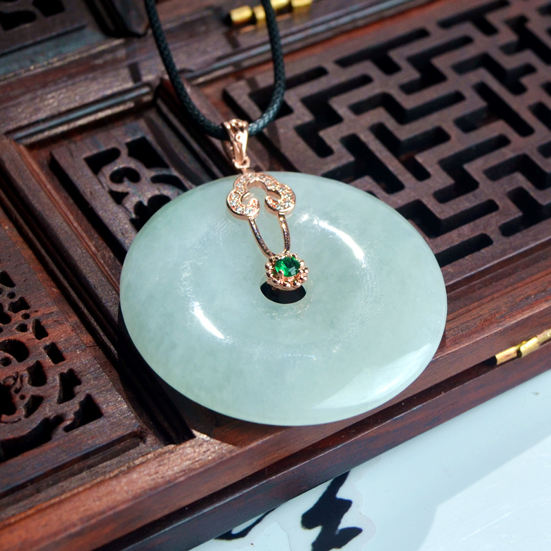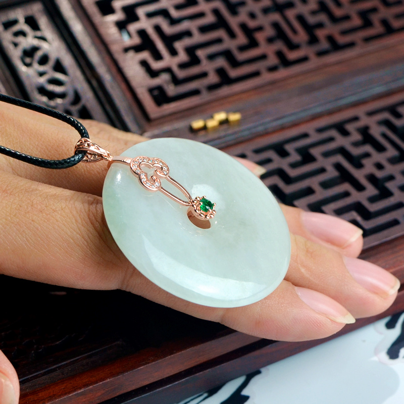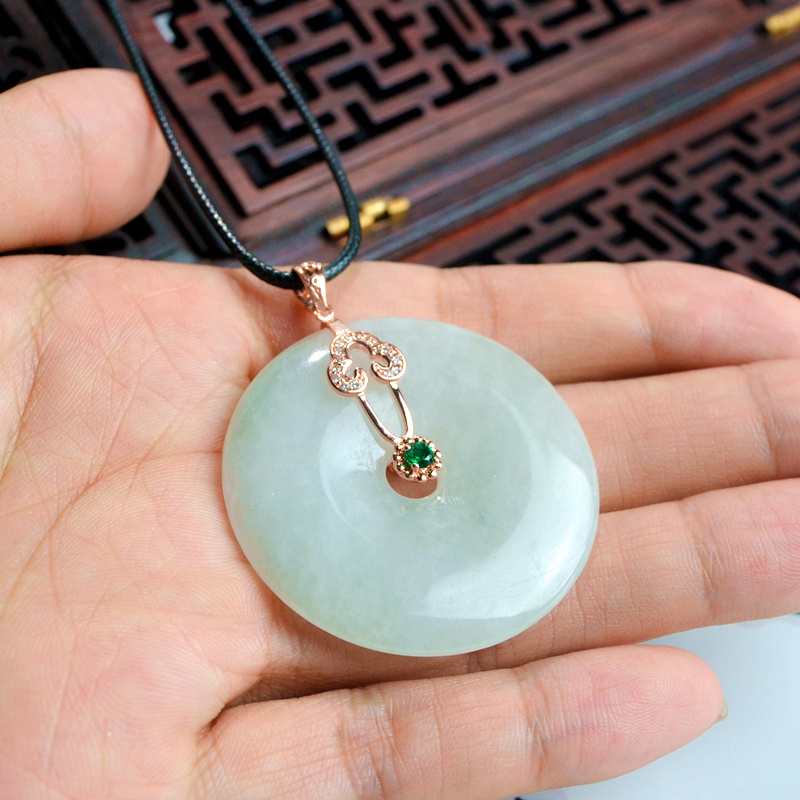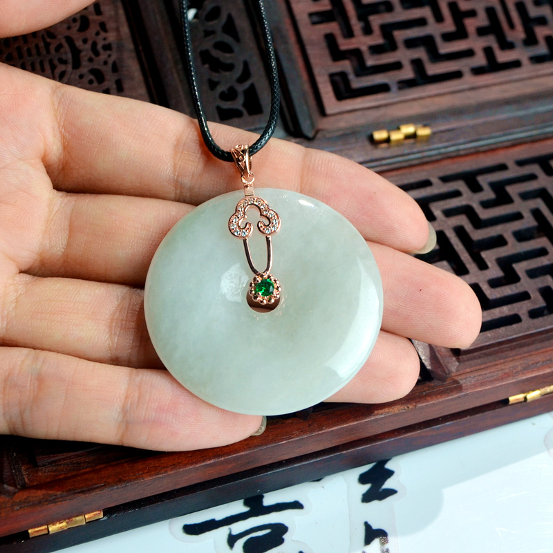 缅甸翡翠冰糯种平安扣玉扣吊坠男女款吊坠天然A货翡翠怀古玉挂件