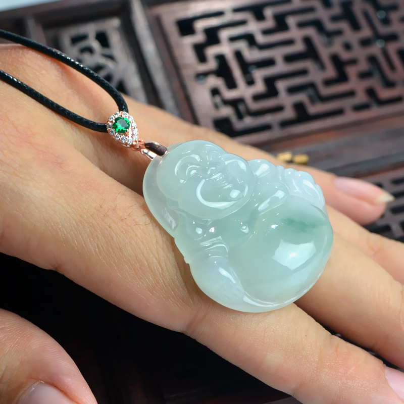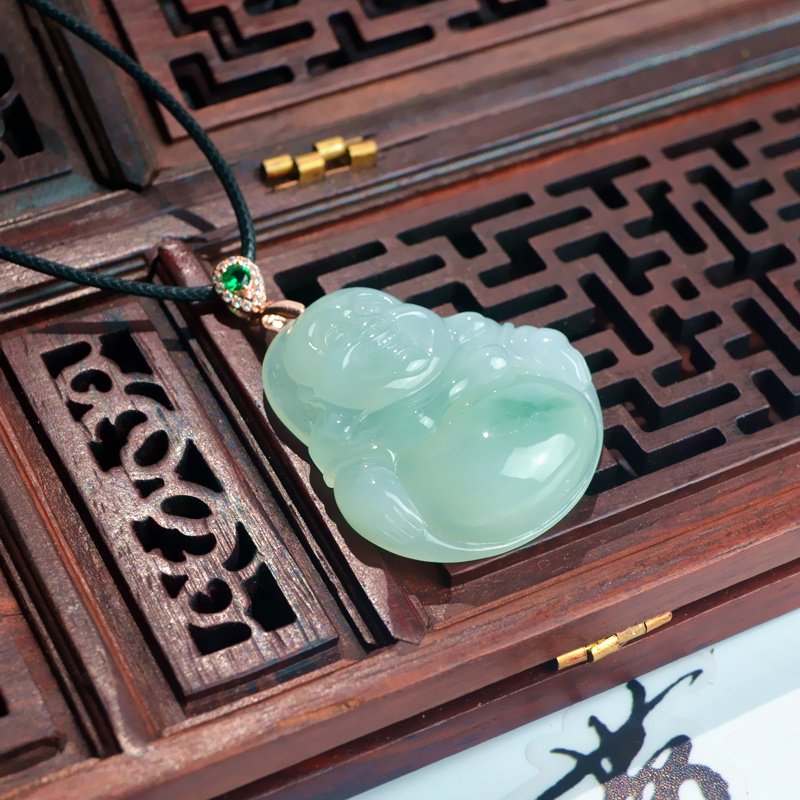 高档精雕正品天然a货翡翠缅甸玉佛女款弥勒佛挂件大肚笑佛公吊坠