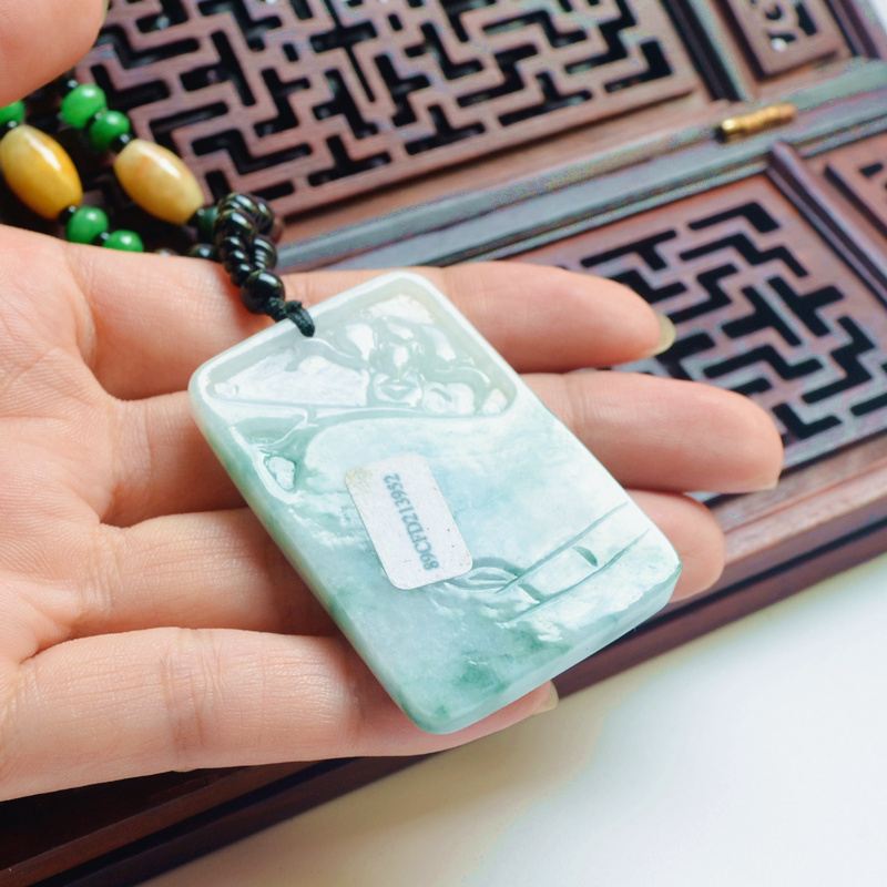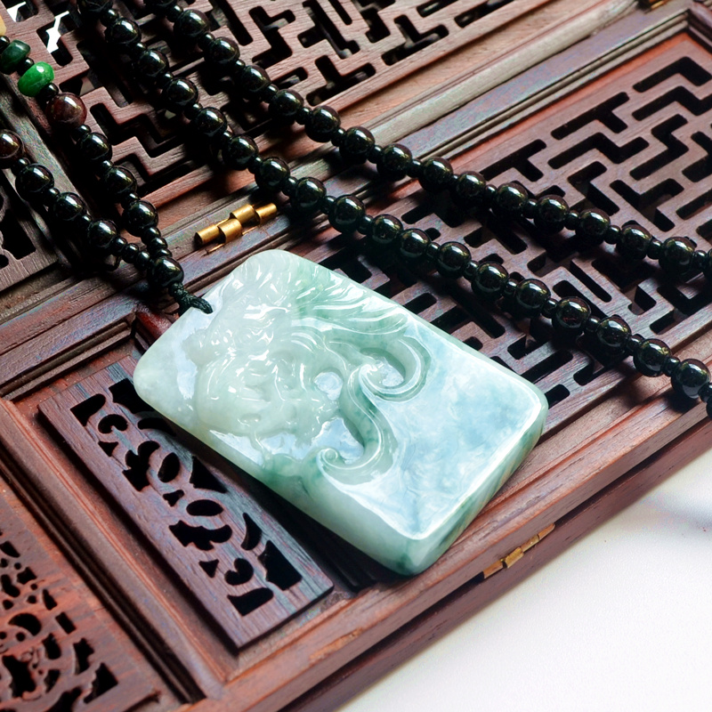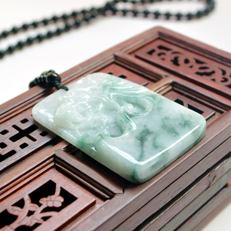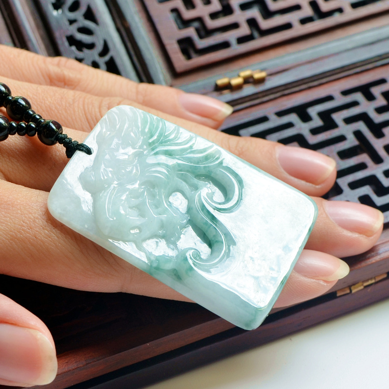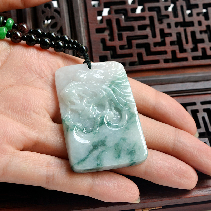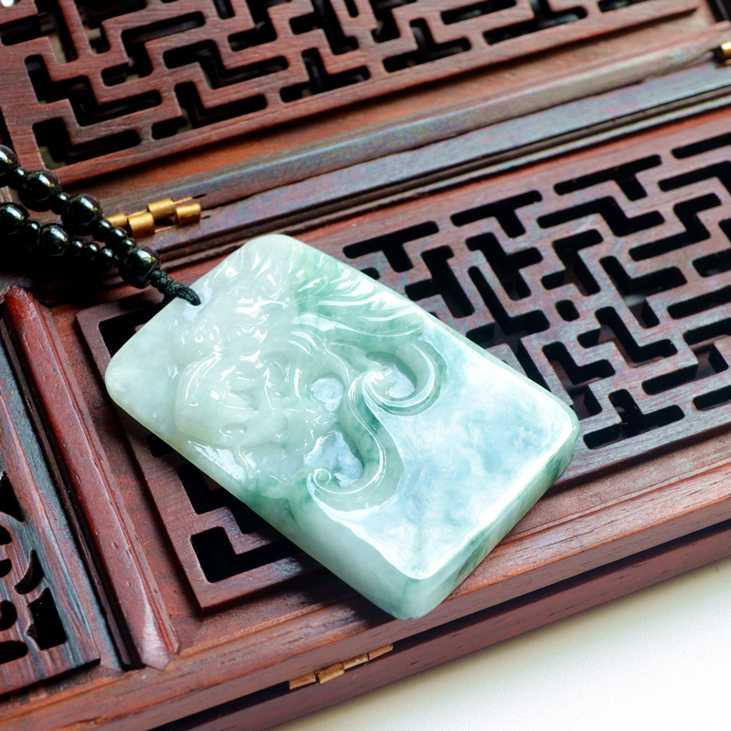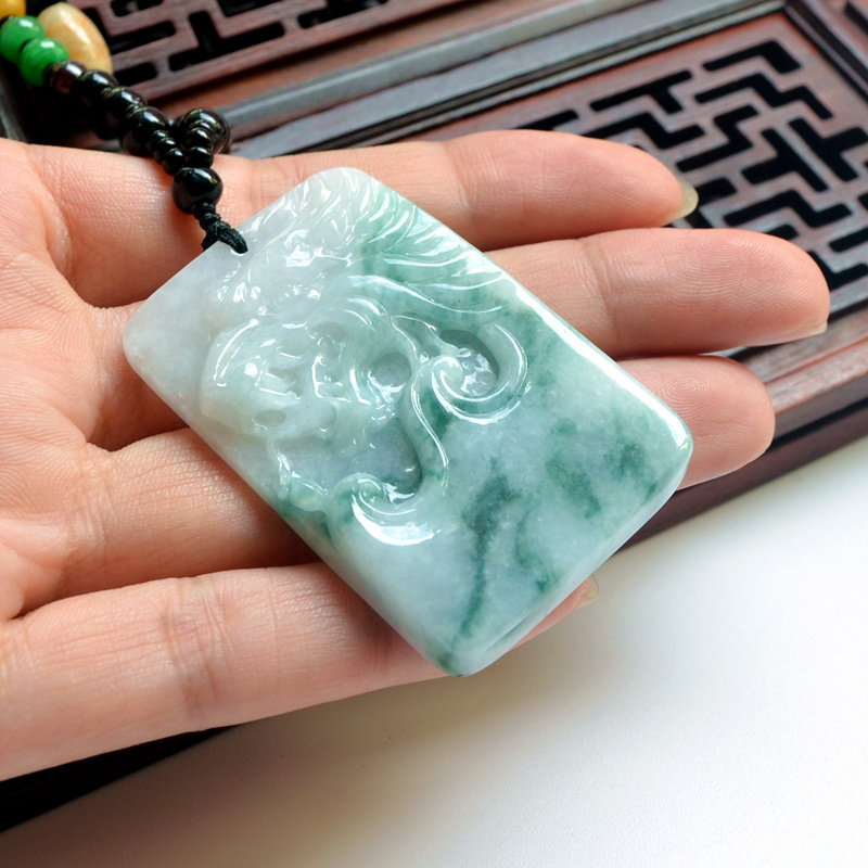 飘花缅甸玉A货玉石霸气狼头玉坠挂件正品天然勇敢图腾翡翠吊坠